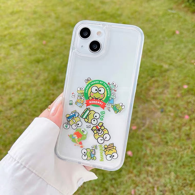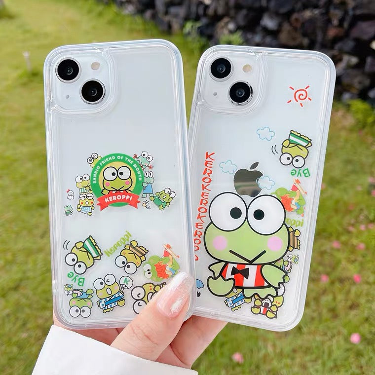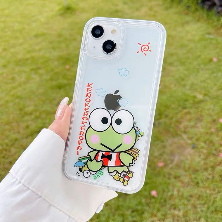 Japanese Cartoon Keroppi KP QuickSand iPhone Case 15 14 13 12 11 XS XR Pro Max Plus