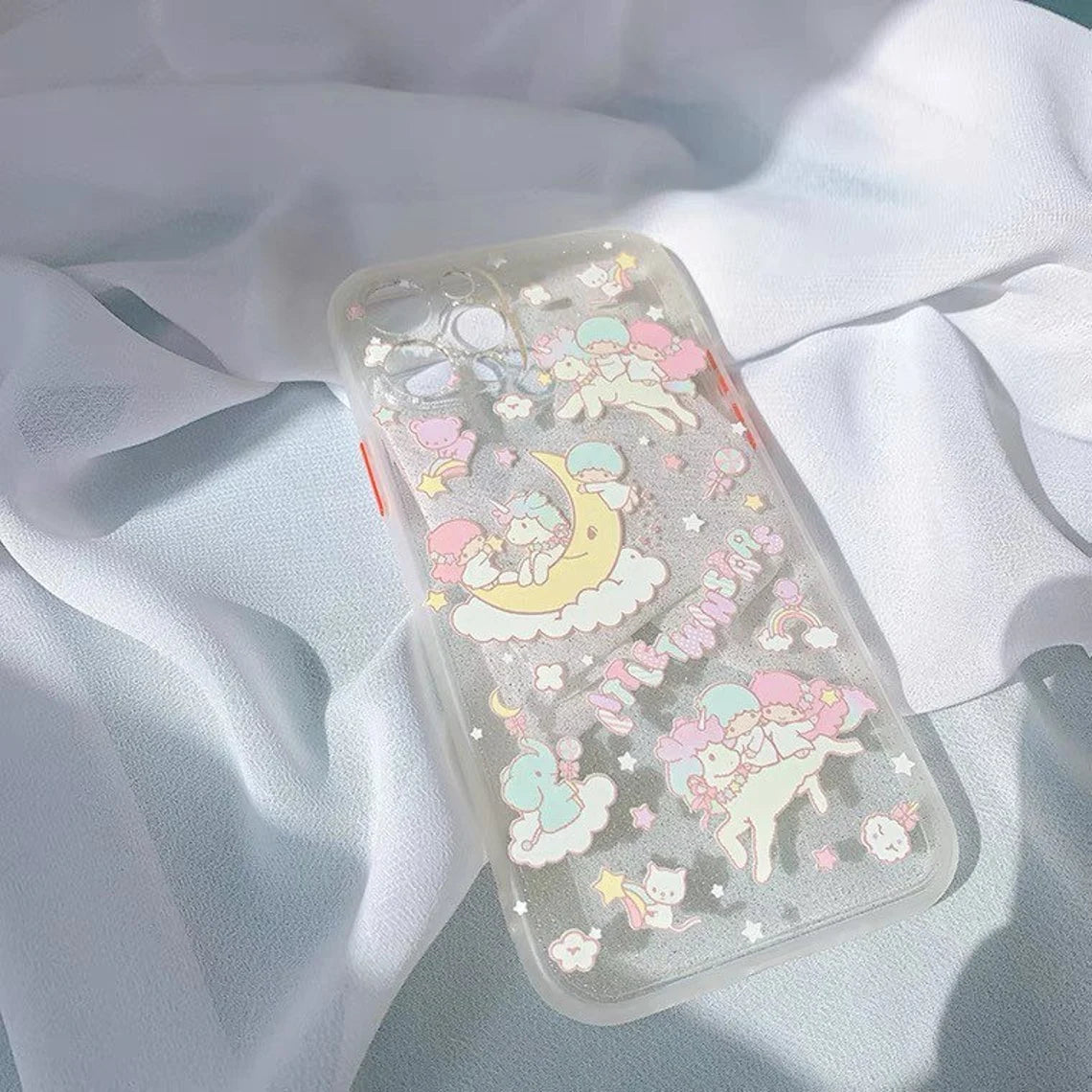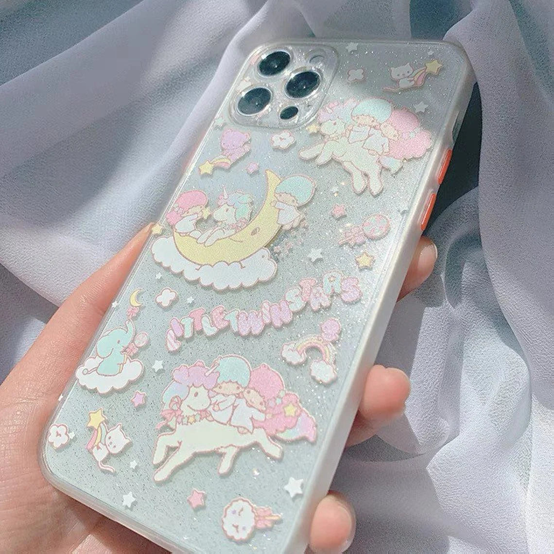 Japanese Cartoon Little Twin Stars Glitter iPhone Case 7 8 PLUS SE2 XS XR X 11 12 13 Pro Promax 12mini