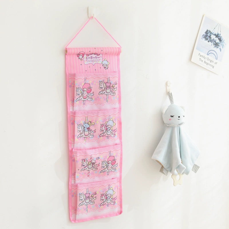 Japanese Cartoon Merry Go Round Wall Hanging Storage Caddy Bag | Hello Kitty My Melody Kuromi Little Twin Stars Cinnamoroll Sanrio Friends - Bedroom Girl Gift