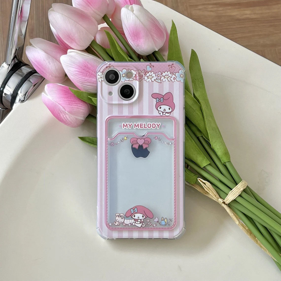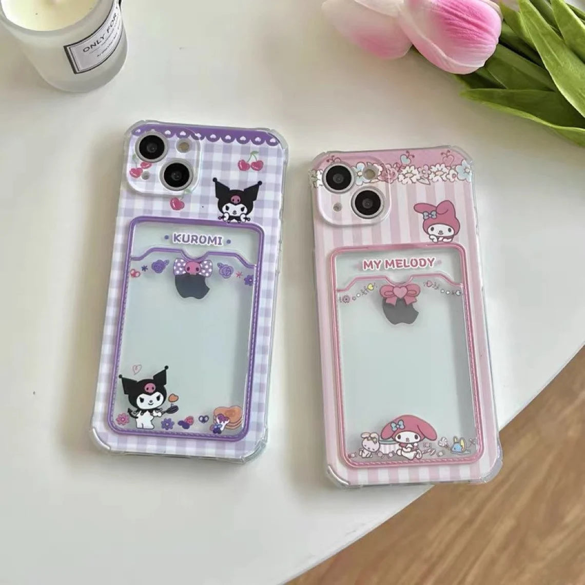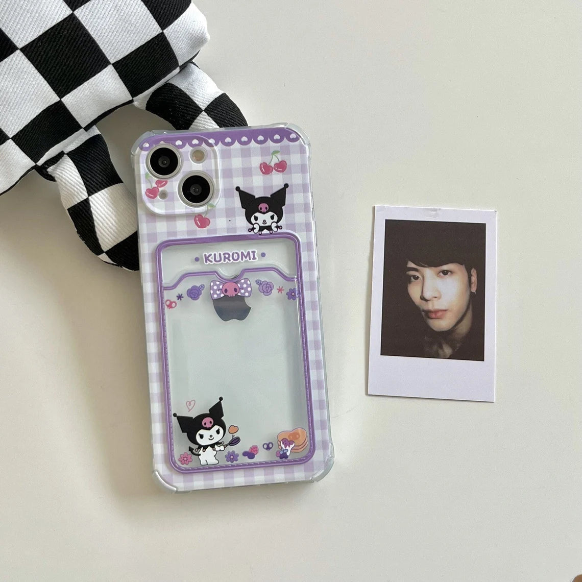 Japanese Cartoon MM Pink KU Purple Card Photo Holder iPhone Case 7 8 PLUS X 11 12 13 14 15 Pro Promax