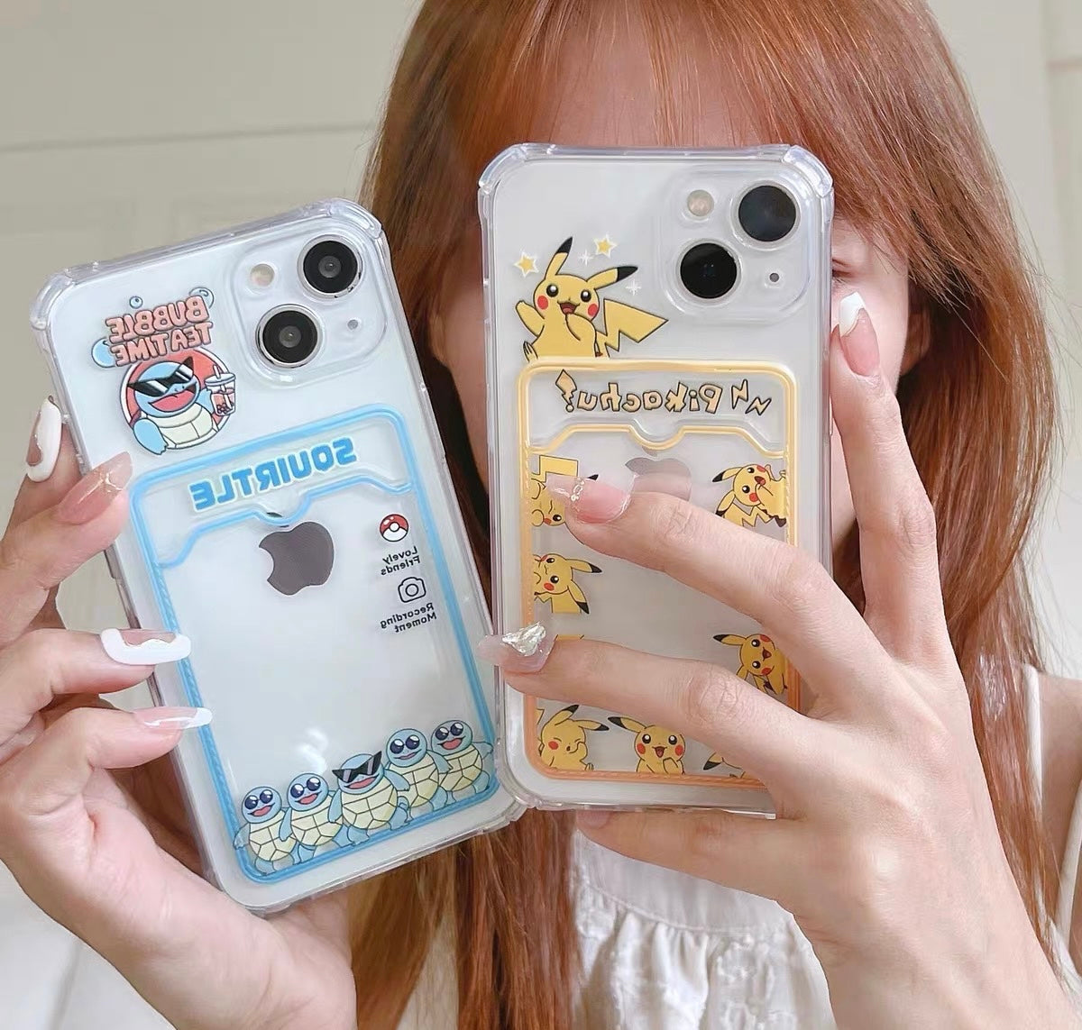 Japanese Cartoon Pokemon Photo Holder | Pikachu Squirtle - iPhone Case PLUS X 11 12 13 14 15 Pro Promax