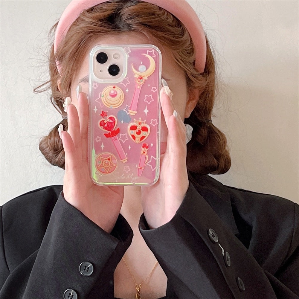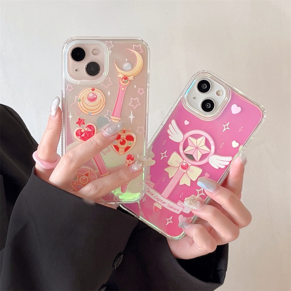 Japanese Cartoon Sailor Moon CardCaptorSakura Blu Ray Magic Wand Stick iPhone Case PLUS Max 11 12 13 14 Pro Promax