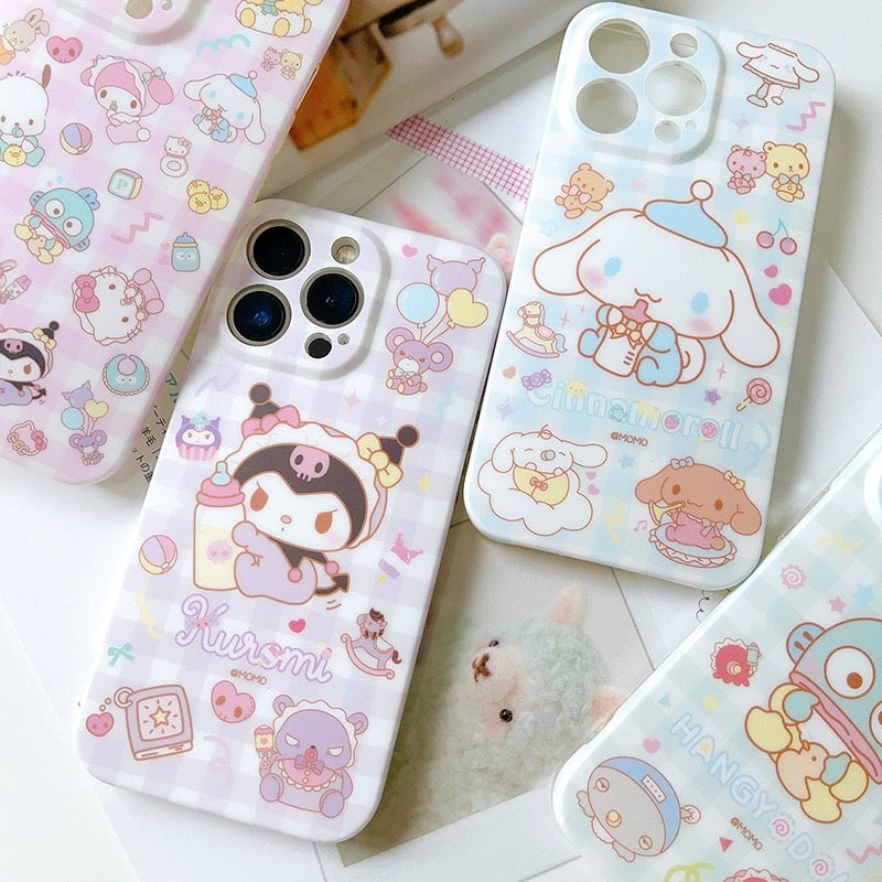 Japanese Cartoon Sweet Cute Baby Style | Kuromi Cinnamoroll Hangyodon - Colour Matt iPhone Case 14 13 Pro Promax