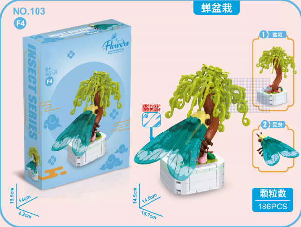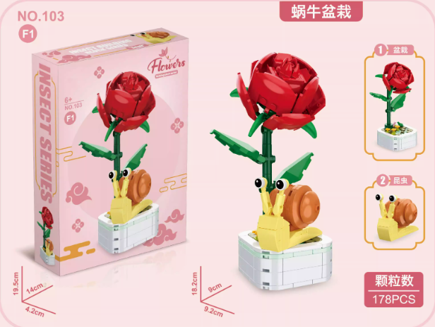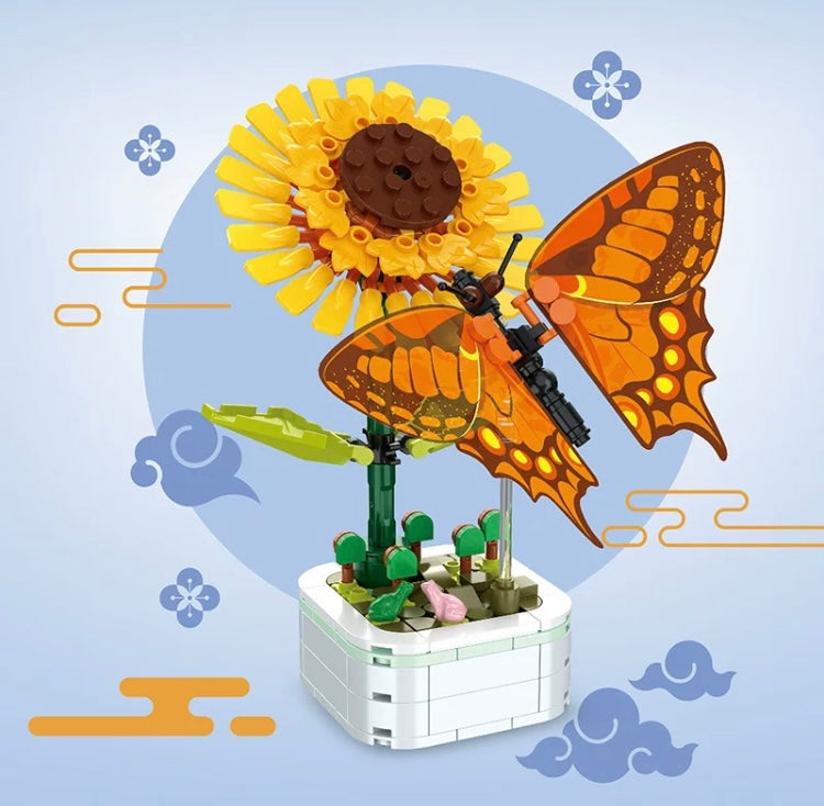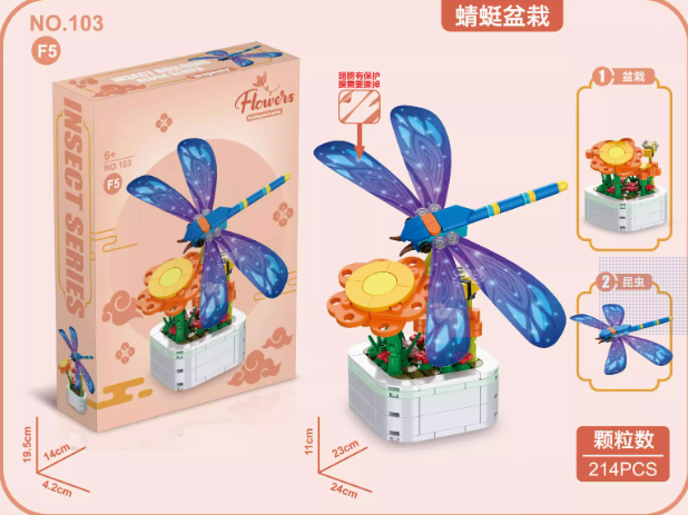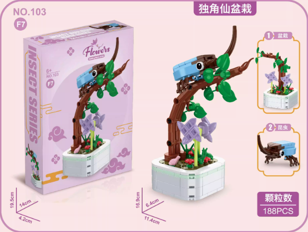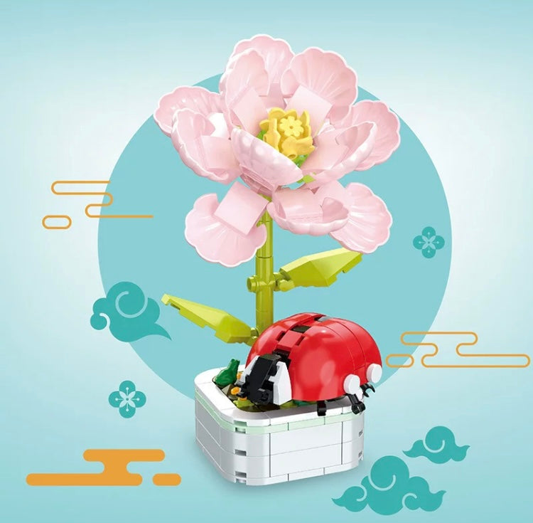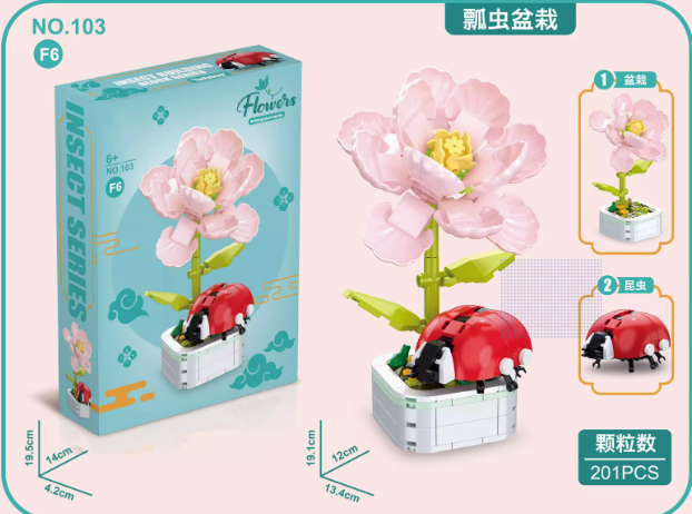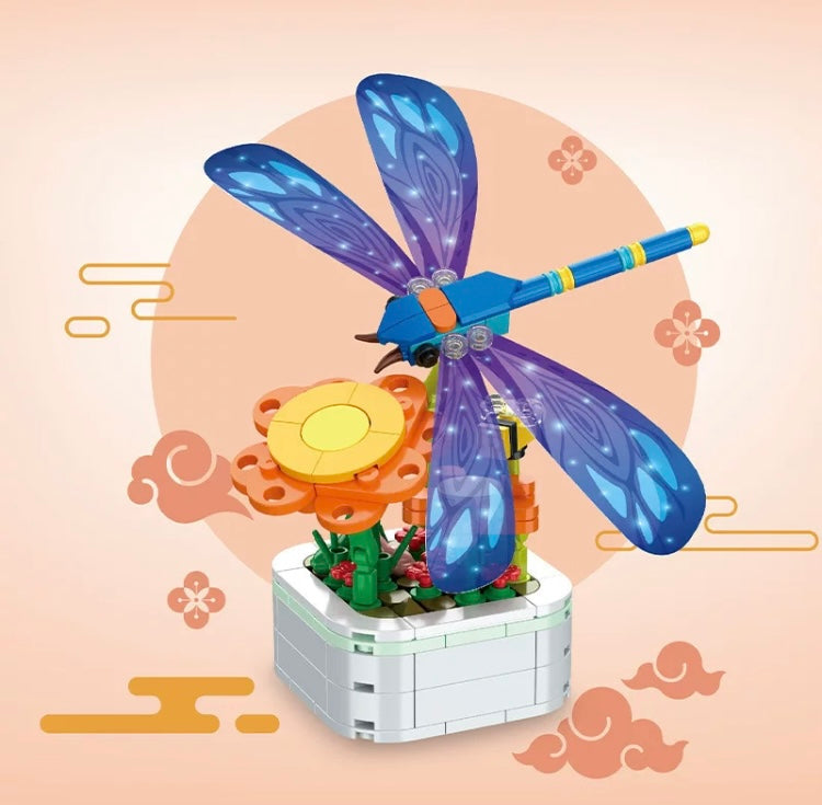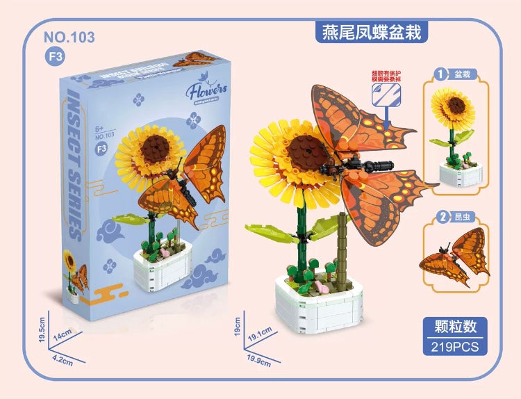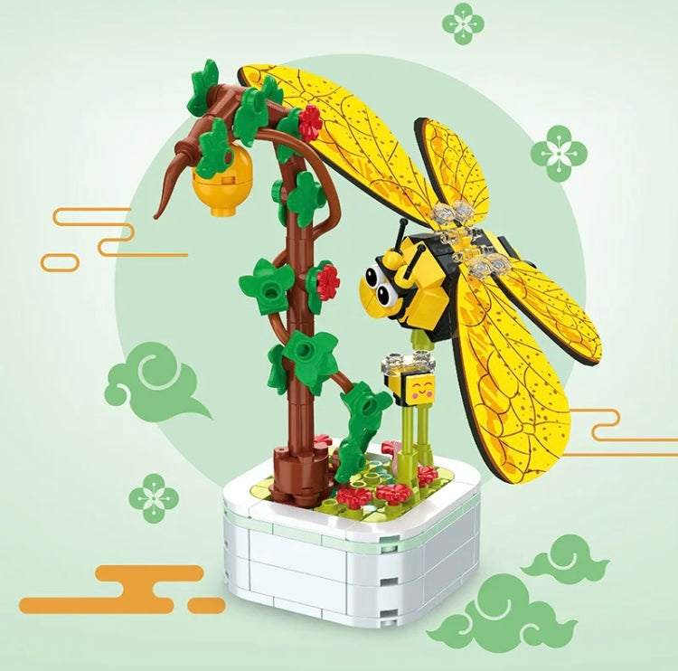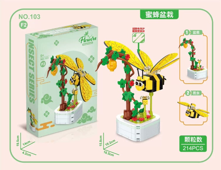 Mini Block Building Insect with Flowers Plant | Bee Butterfly - Tiny Particle Assembly DIY Handmade Children Gift