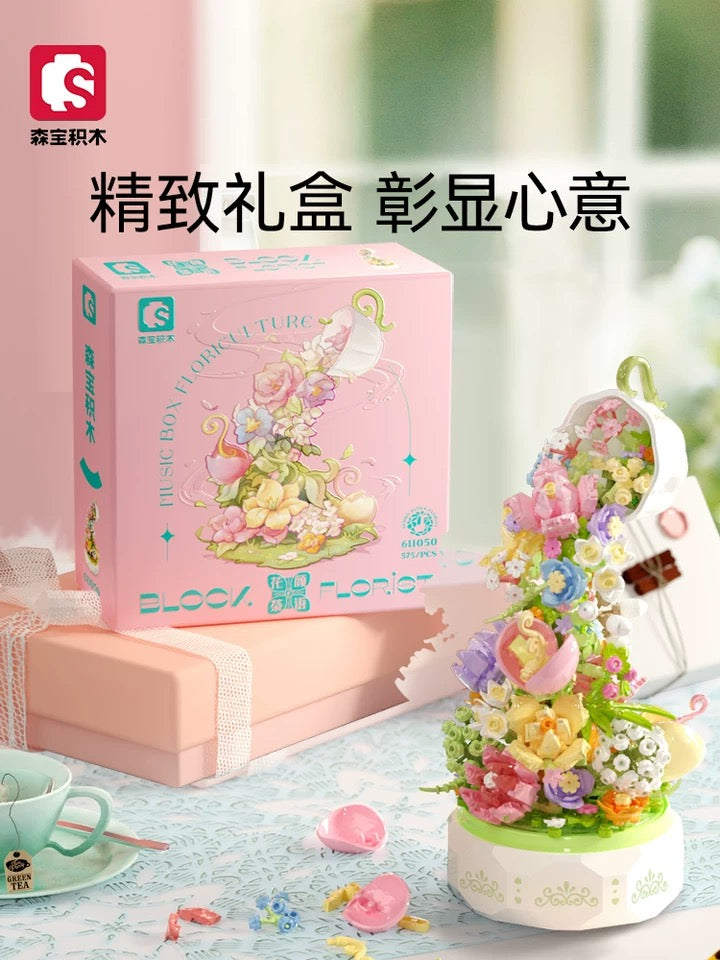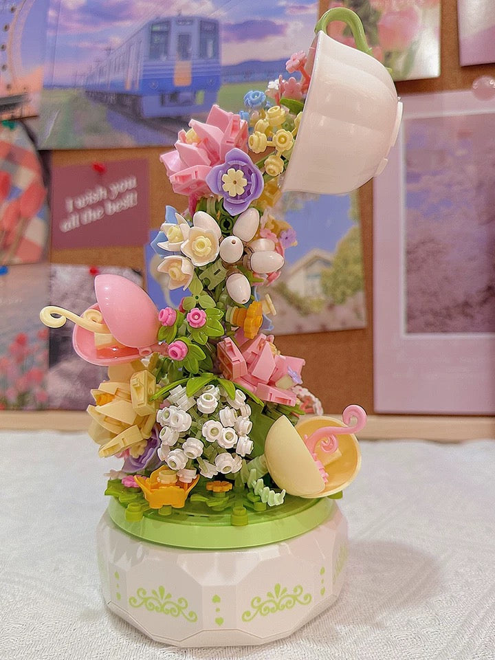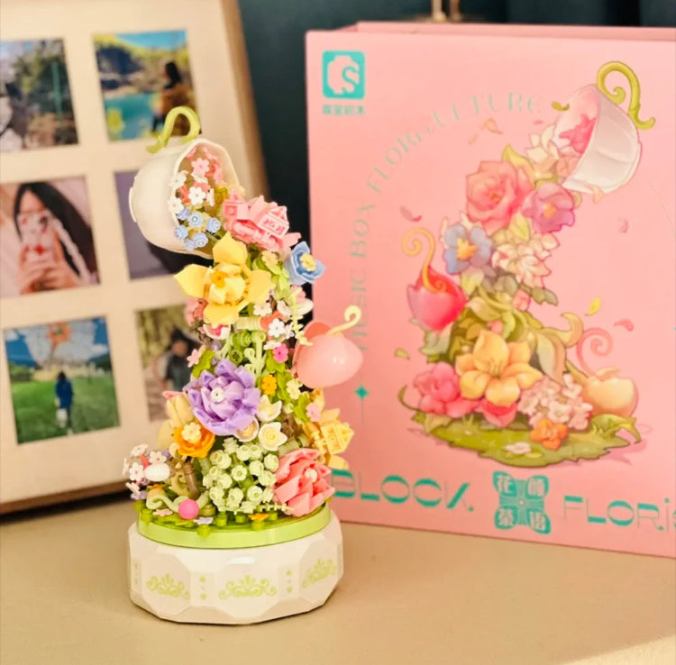 Mini Block Building Romantic Flower Express Love Music Box - with LED Lights Valentine Wedding Gift DIY Handmade Gift
