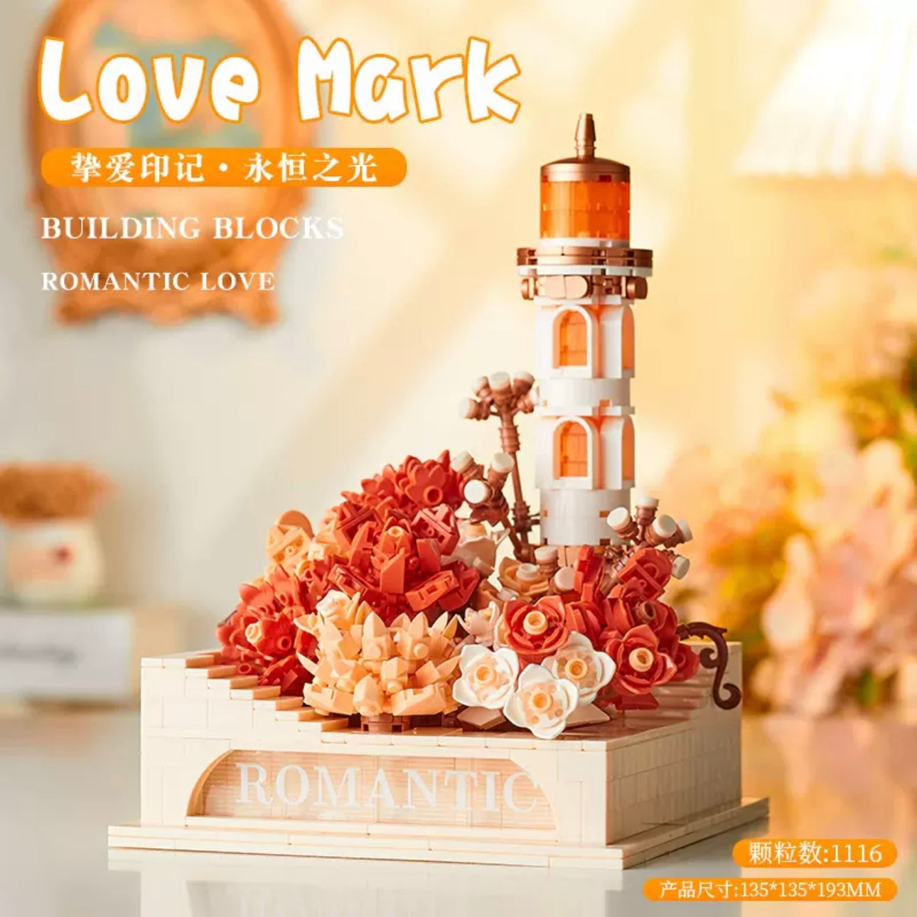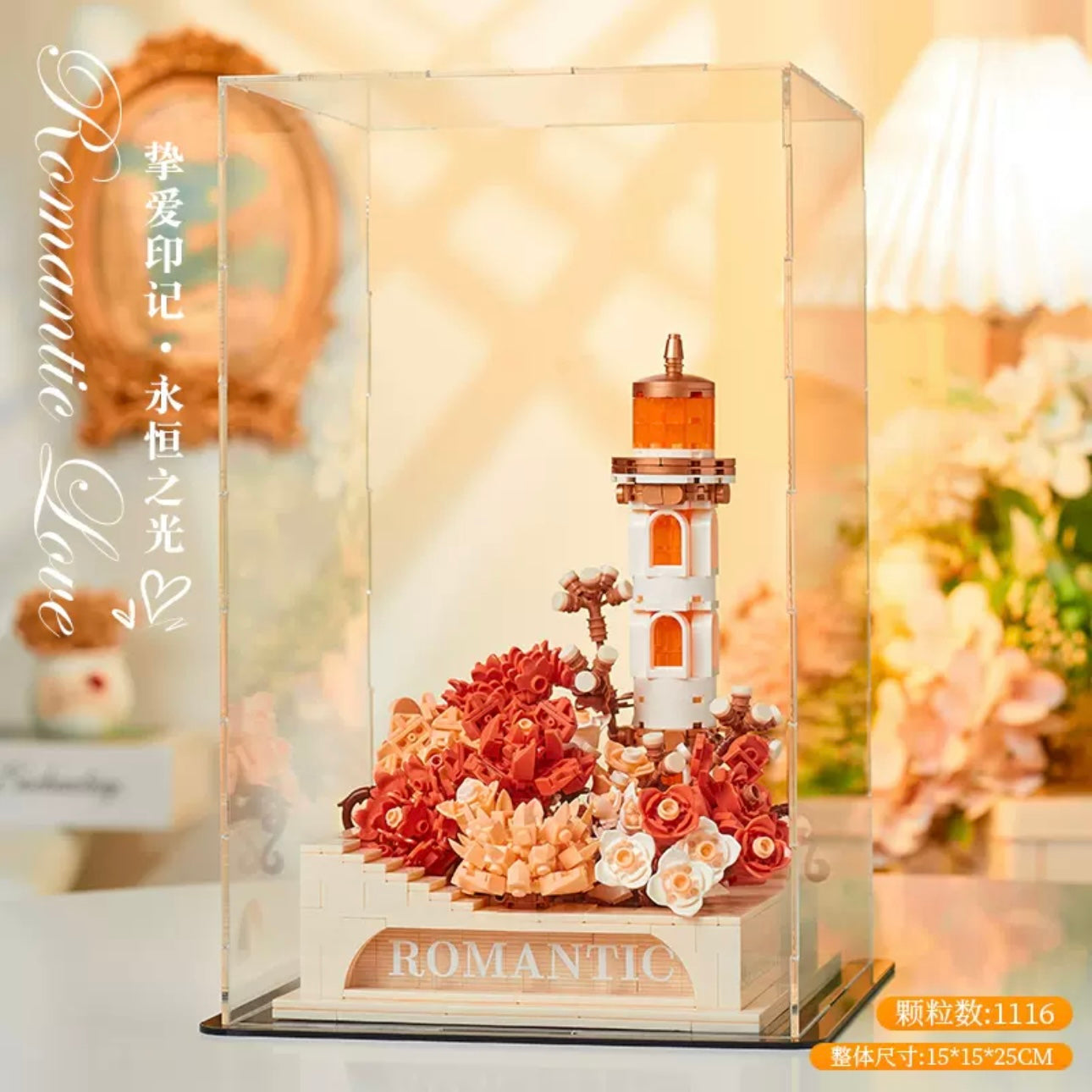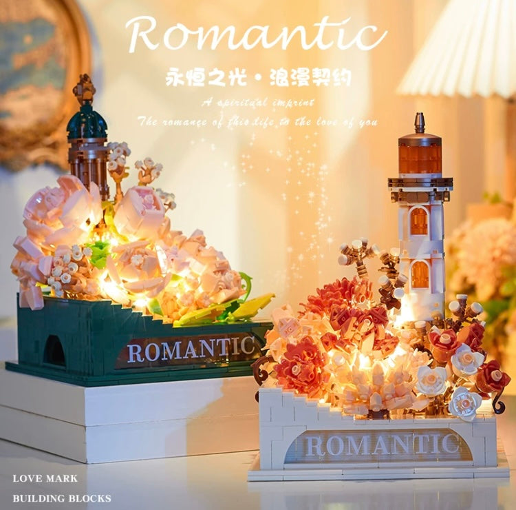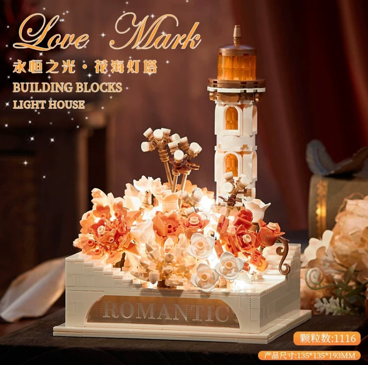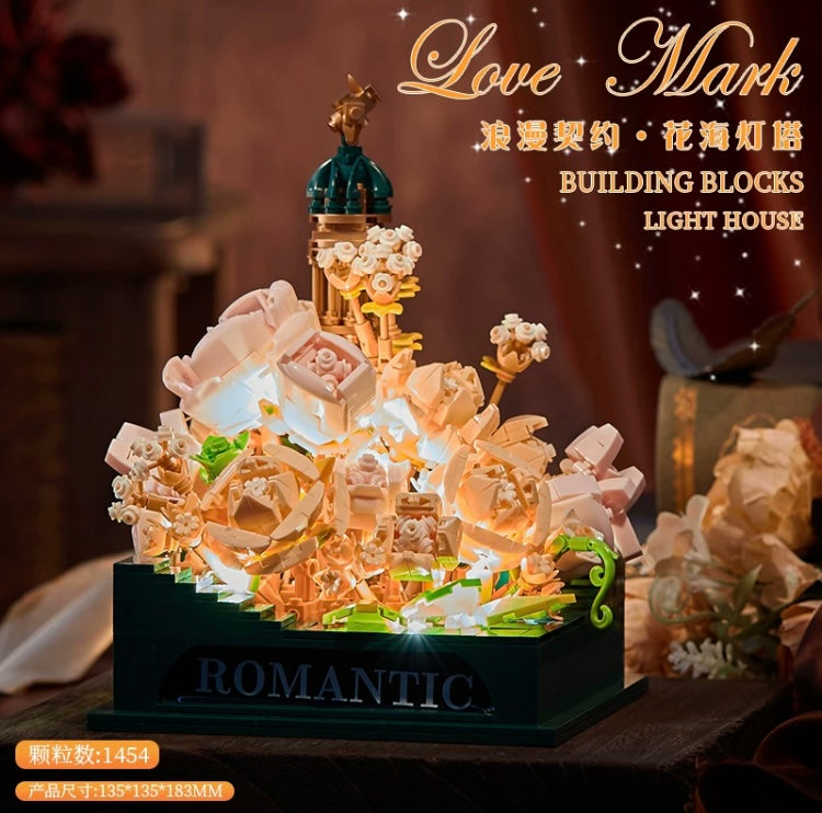Mini Block Building Romantic LightHouse with Flower - with LED Lights DIY Valentine Handmade Gift