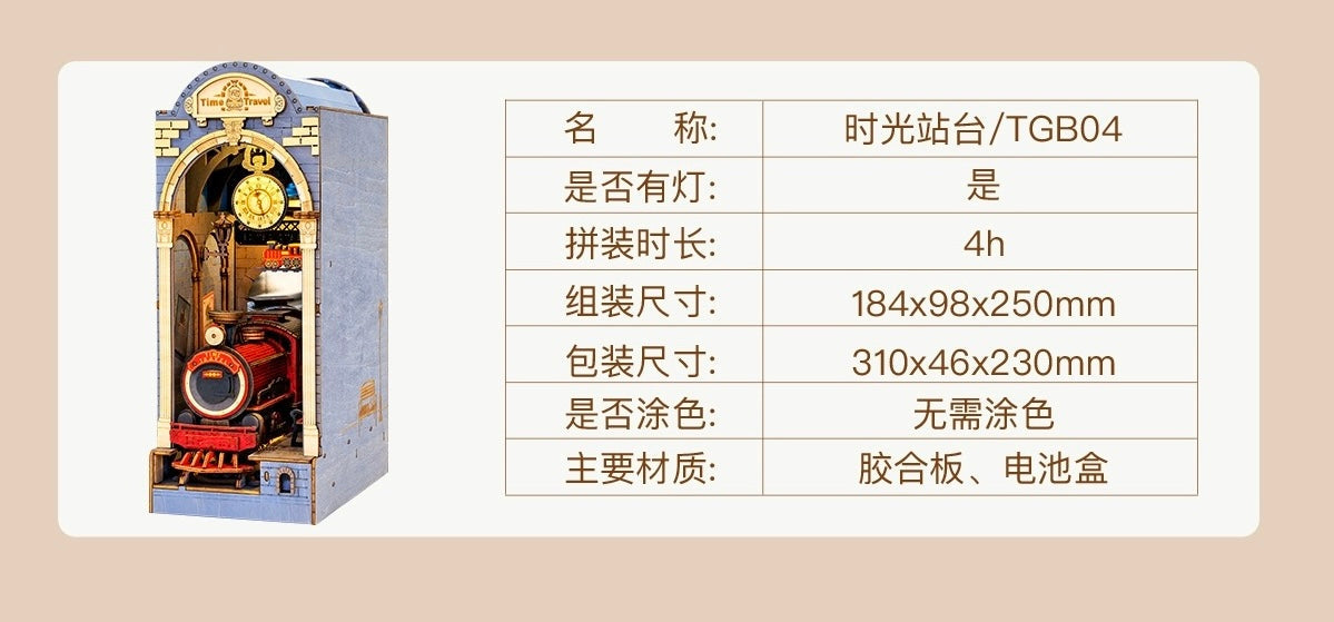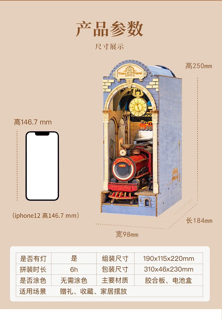 Craft Kits Wooden Booknook & Wonderland | Time Travel Train Station - DIY Handmade Mini World Miniature Gift with LED Light