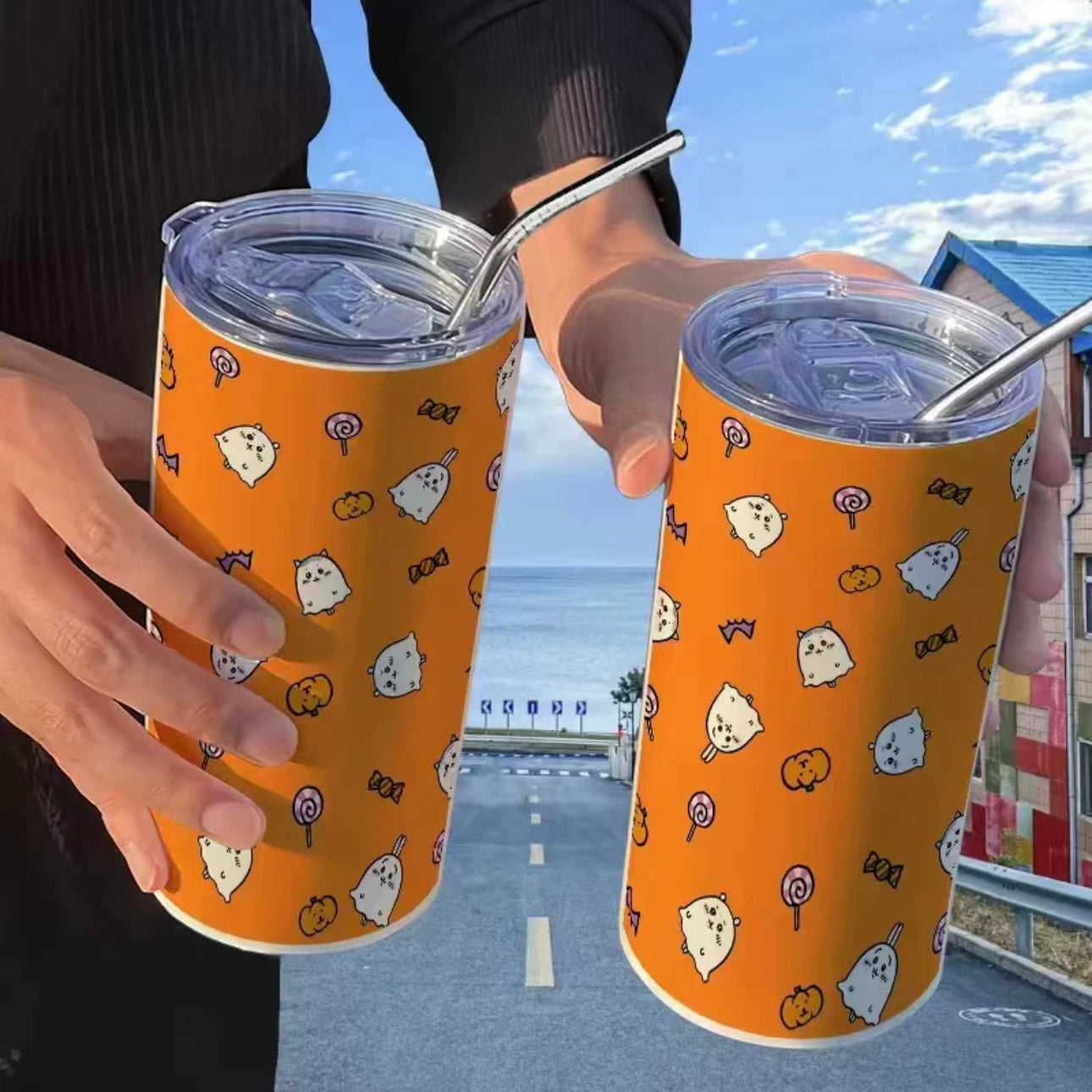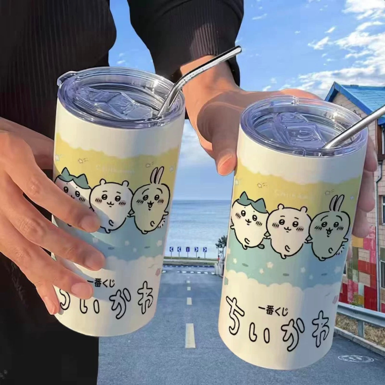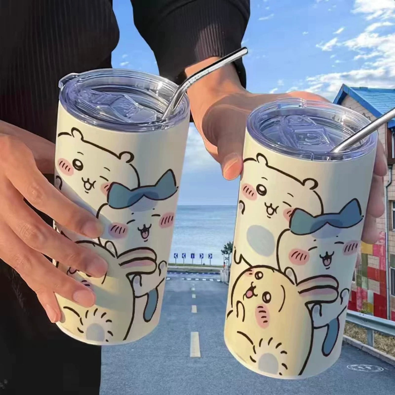 Japanese Cartoon ChiiKawa Tumbler with Straw | ChiiKawa Hachiware Usagi Fun - Warm Cool Lovely Coffee Cup