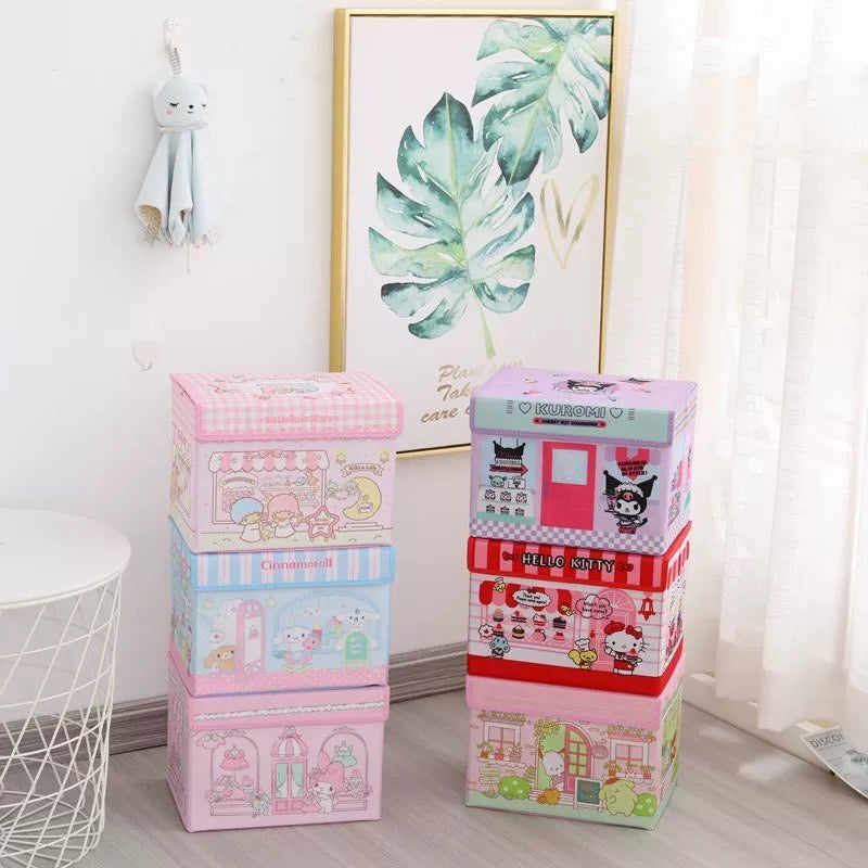 Japanese Cartoon Desert Food Shop Storage Box with Cover | Hello Kitty My Melody Kuromi Little Twin Stars Cinnamoroll Sanrio Friends - Bedroom Girl Gift