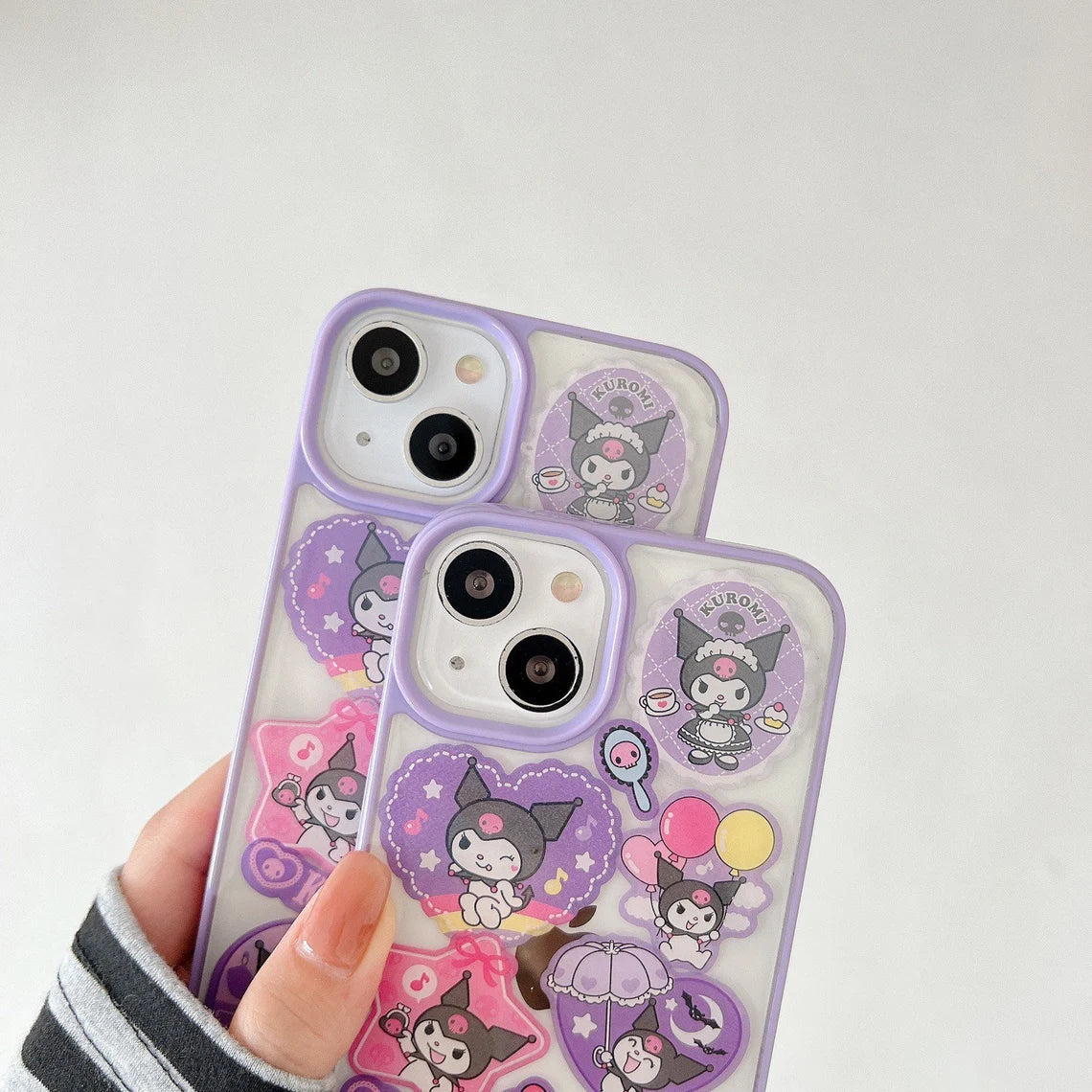 Japanese Cartoon KU Stickers Purple iPhone Case 11 12 13 14 Pro Promax