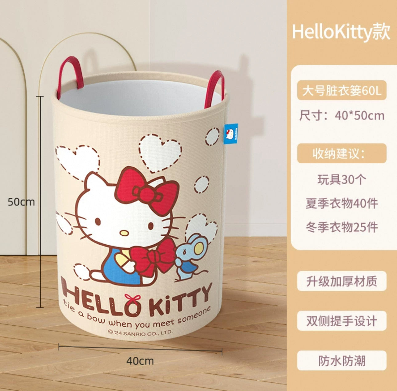 Japanese Cartoon Sanrio with Friends Giant Round Foldable Storage Basket | Hello Kitty My Melody Kuromi Cinnamoroll Pochacco - Bedroom Bathroom Girl Gift