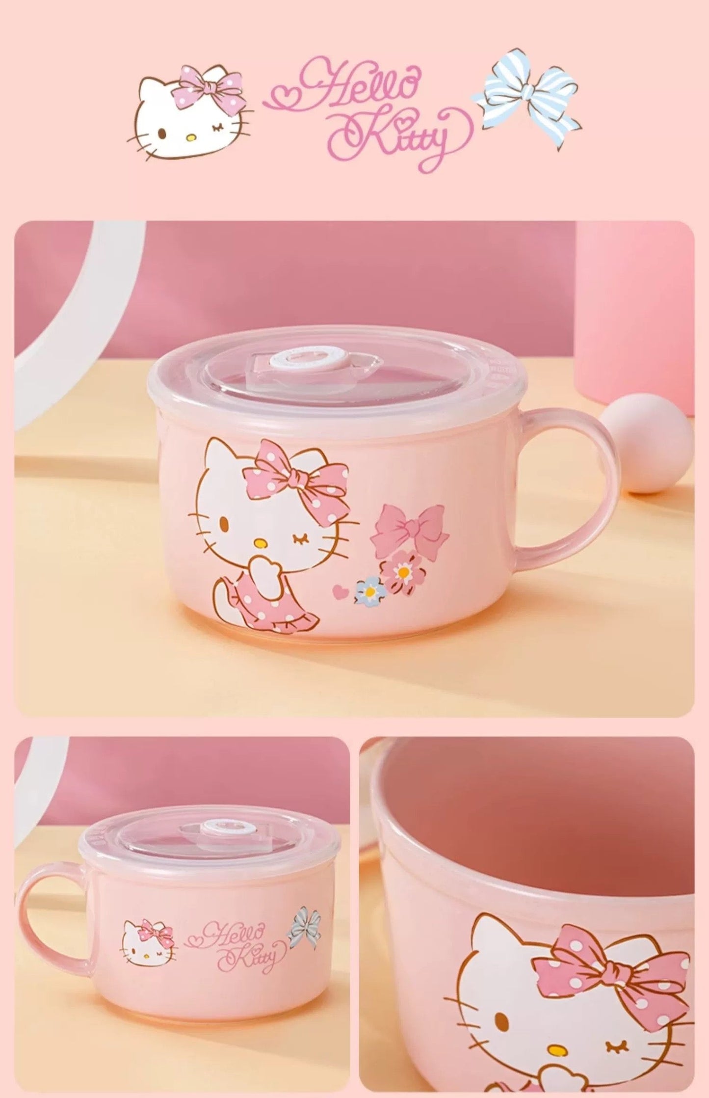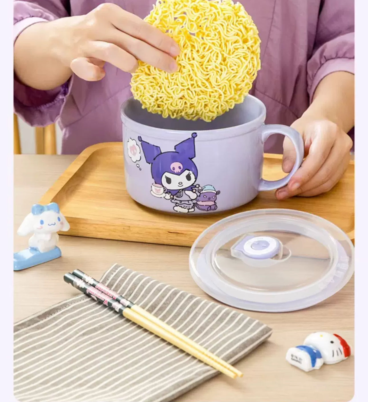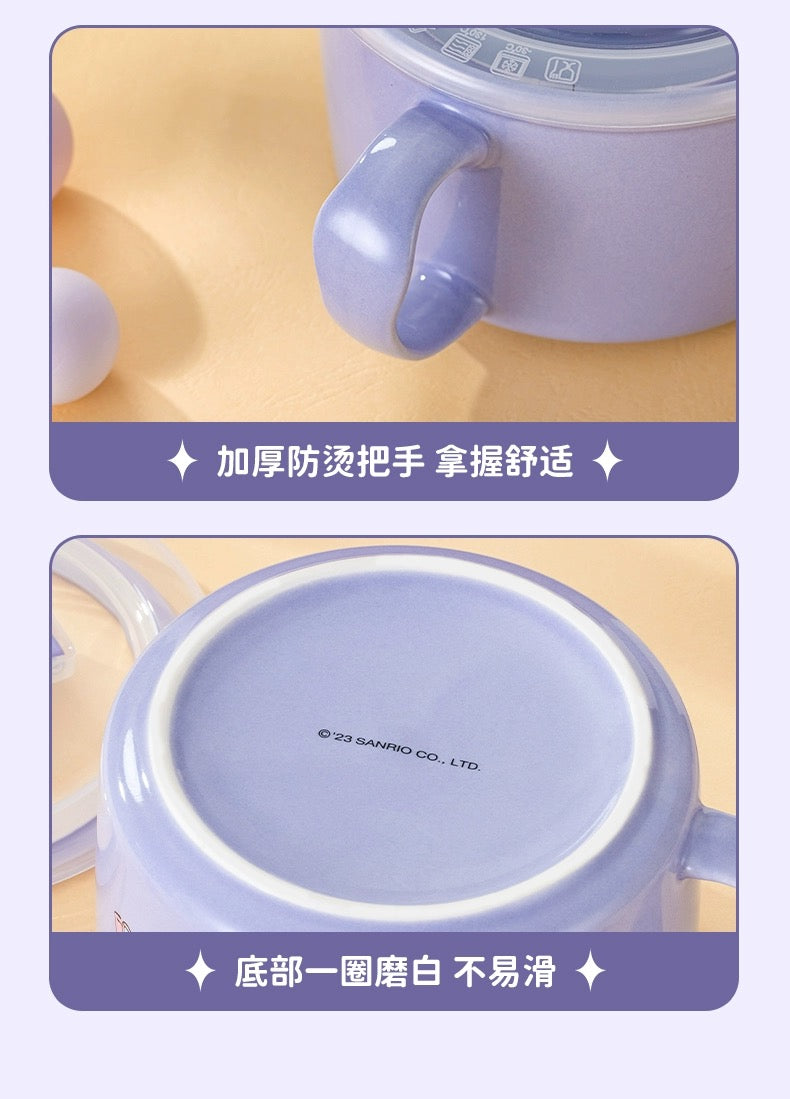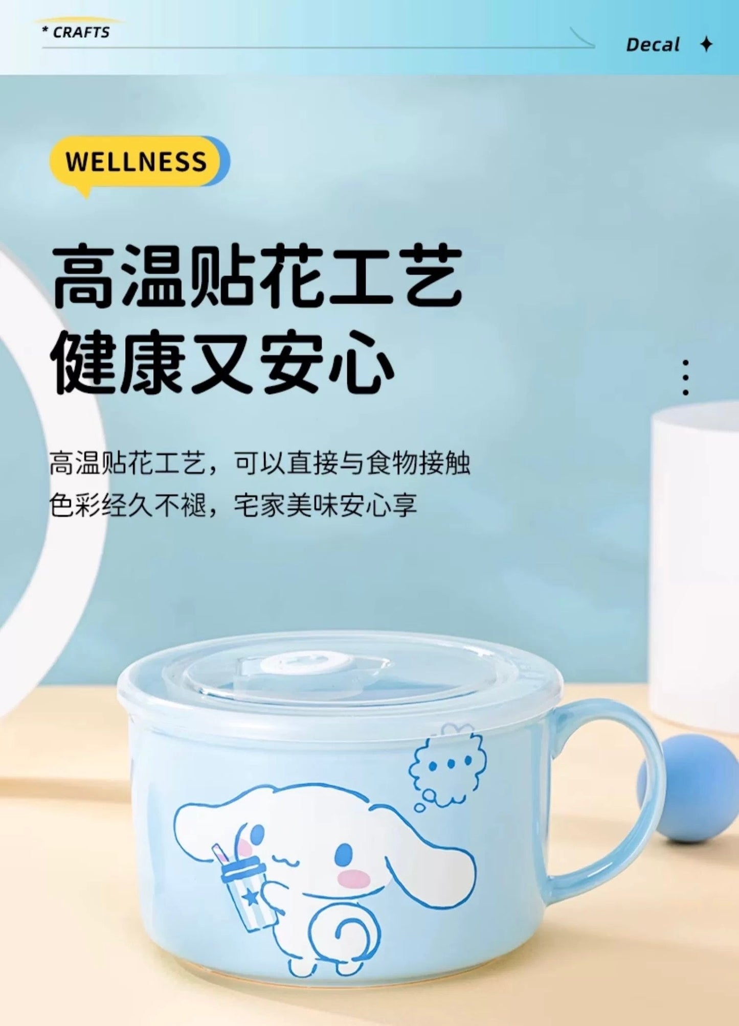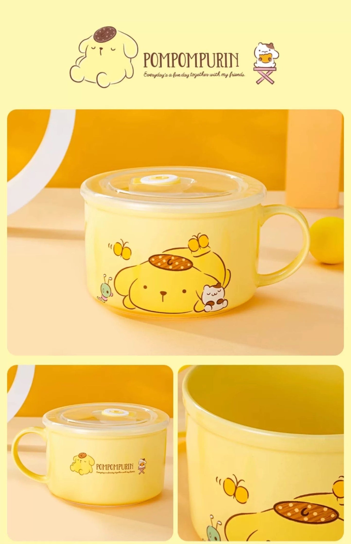 Sanrio Ceramic Bowl with Plastic Cover | Hello Kitty My Melody Kuromi Cinnamoroll Pompompurin Pochacco - Rice Noodles Bowl Food Box