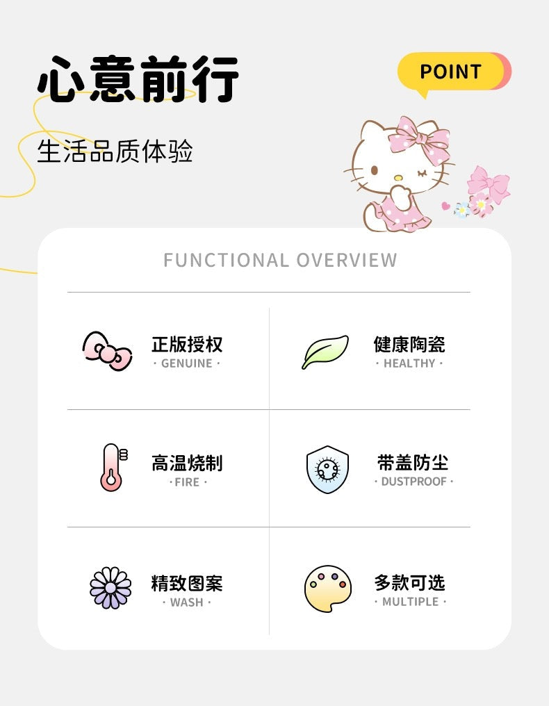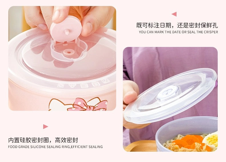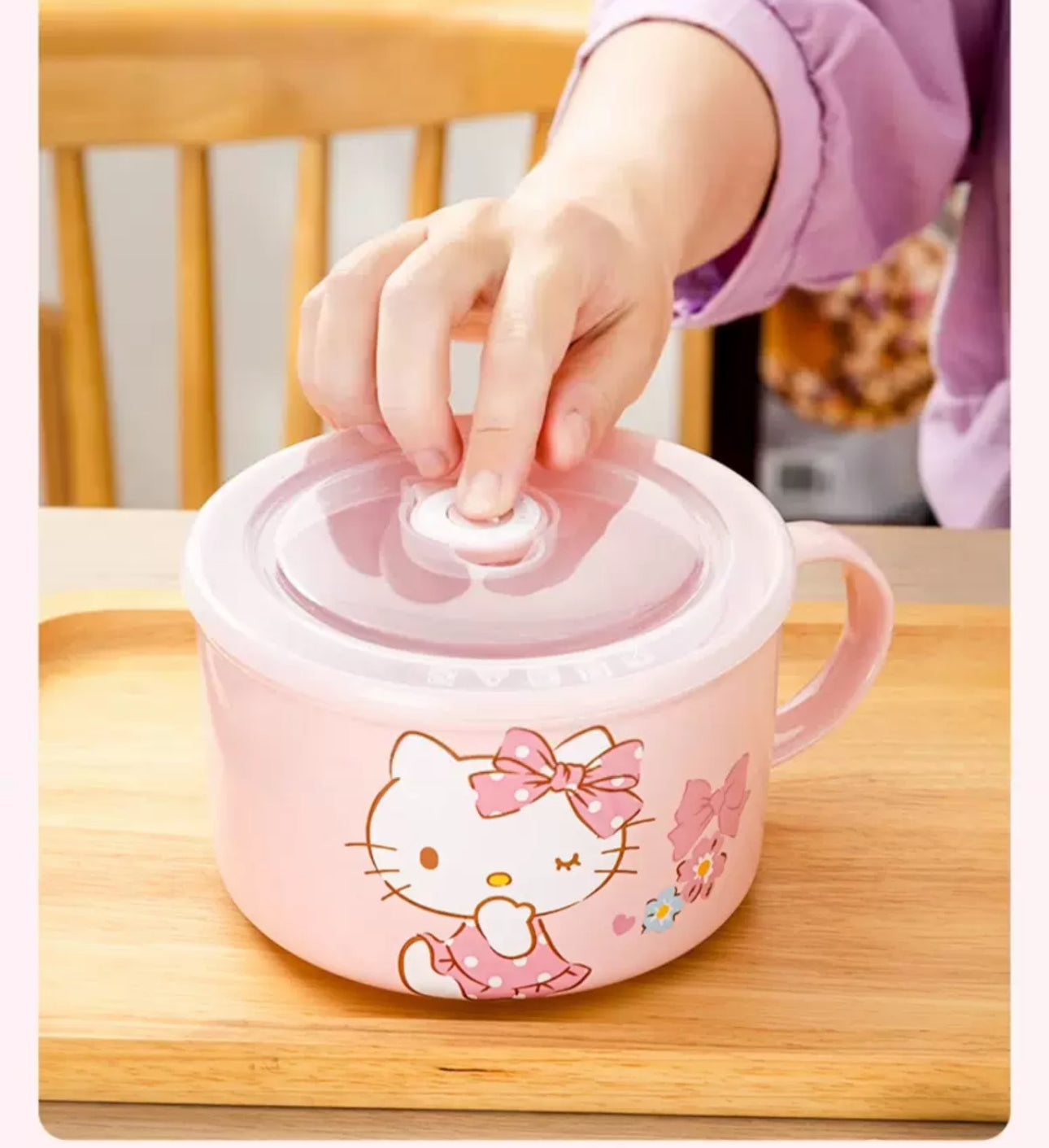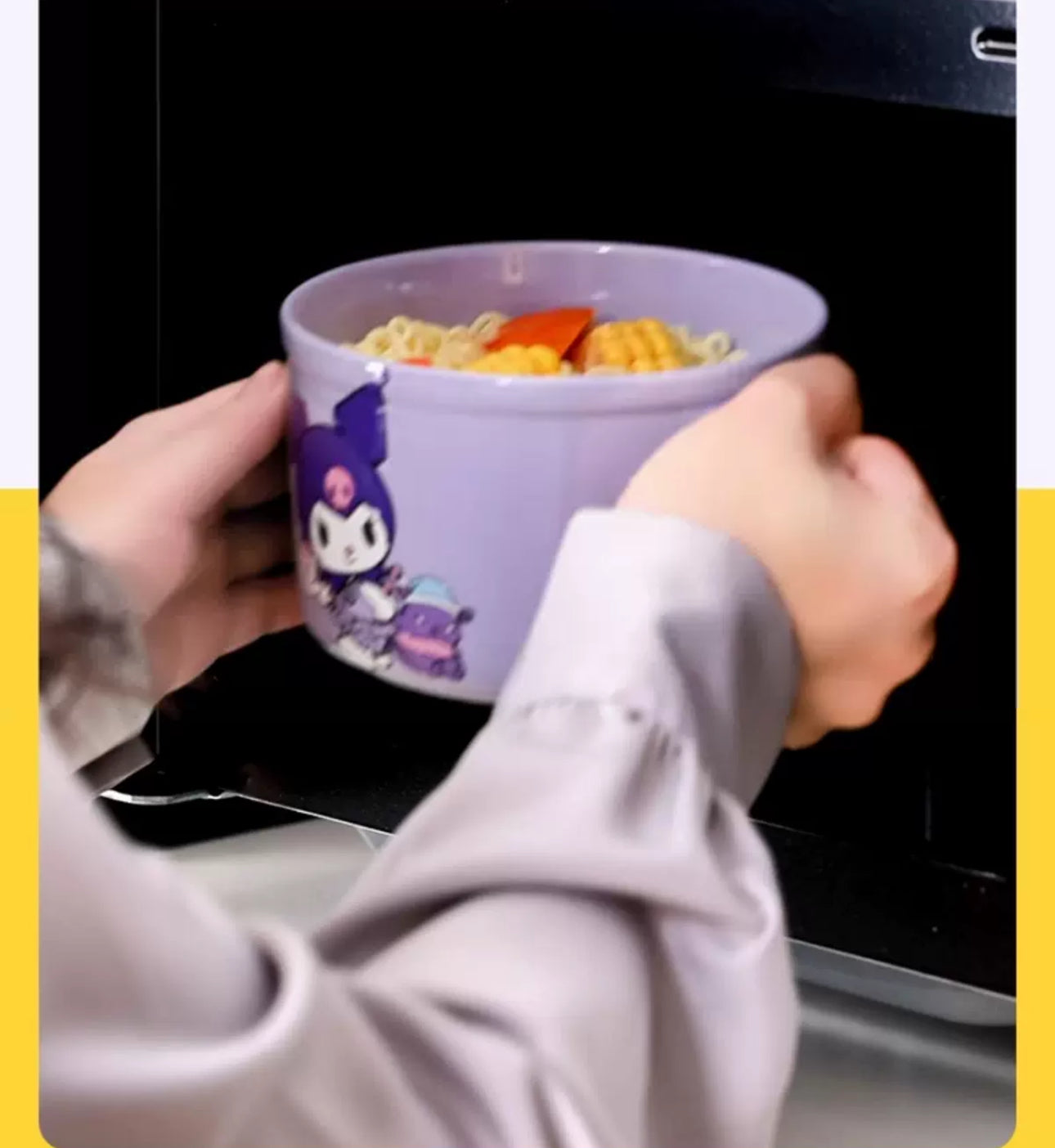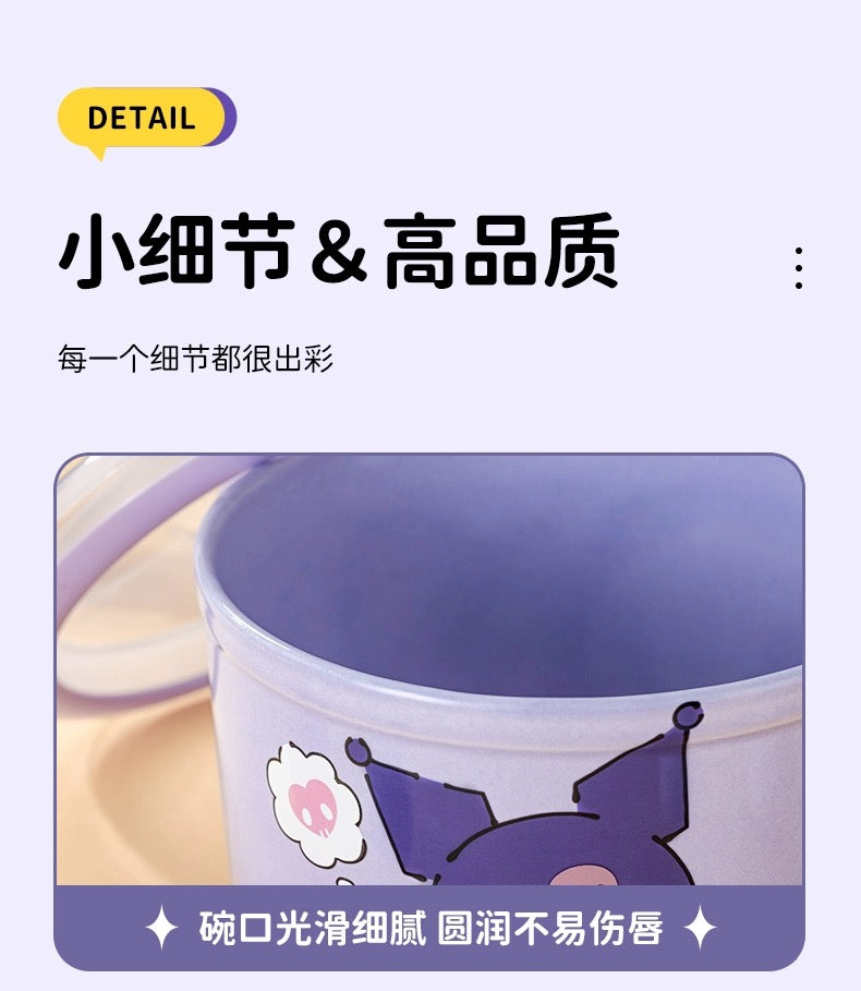Sanrio Ceramic Bowl with Plastic Cover | Hello Kitty My Melody Kuromi Cinnamoroll Pompompurin Pochacco - Rice Noodles Bowl Food Box