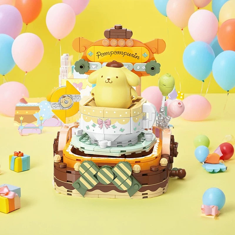 Top Toy x Sanrio Colorful Amusement Park Fair Rides | Pompompurin Fun Rotary Coffe Cup Teacup - Building Blocks Toy Collections
