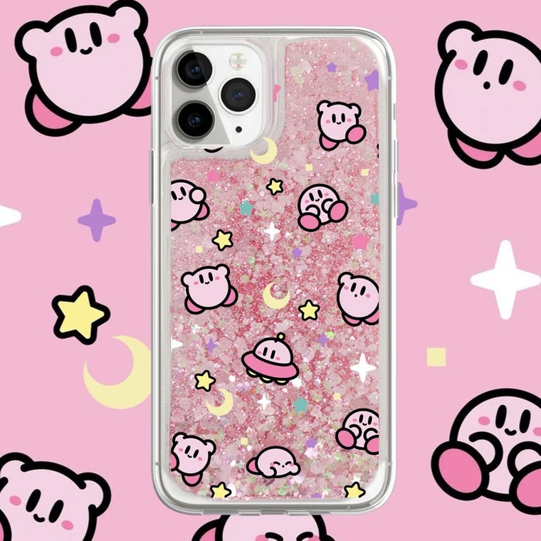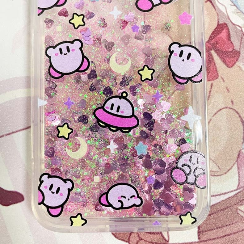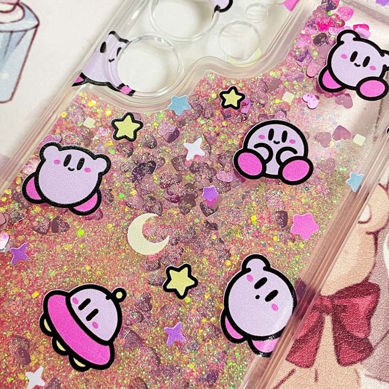 Japanese Cartoon Pink Monster Starkabi UFO Pink Glitter QuickSand iPhone Case 6 7 8 PLUS SE2 XS XR X 11 12 13 14 15 16 Pro Promax 12mini 13mini