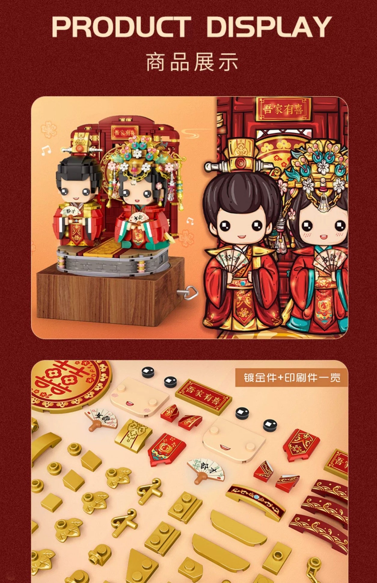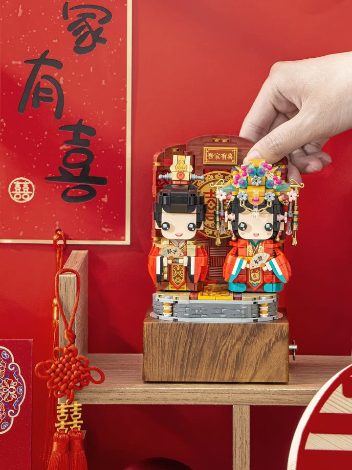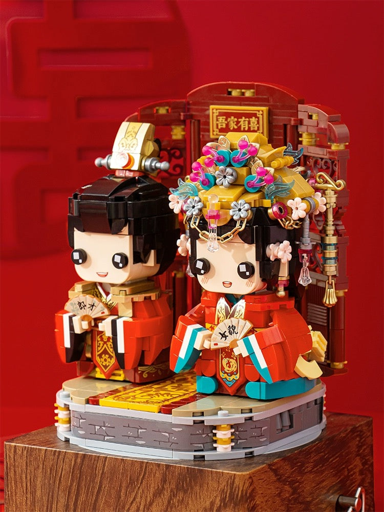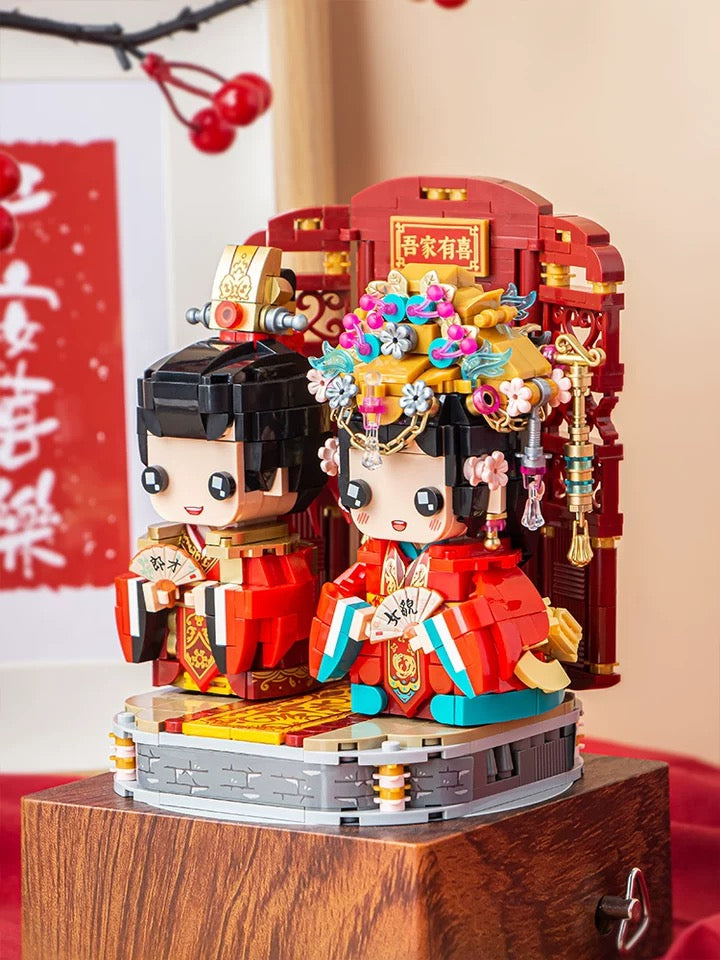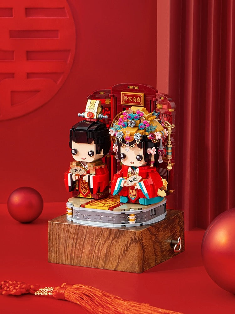 Loz Building Mini Block Characters Music Box | Chinese Wedding Bridegroom Bride - Valentine Wedding DIY Handmade Gift