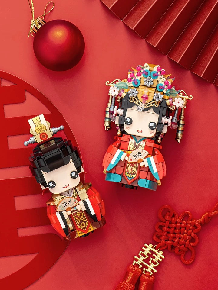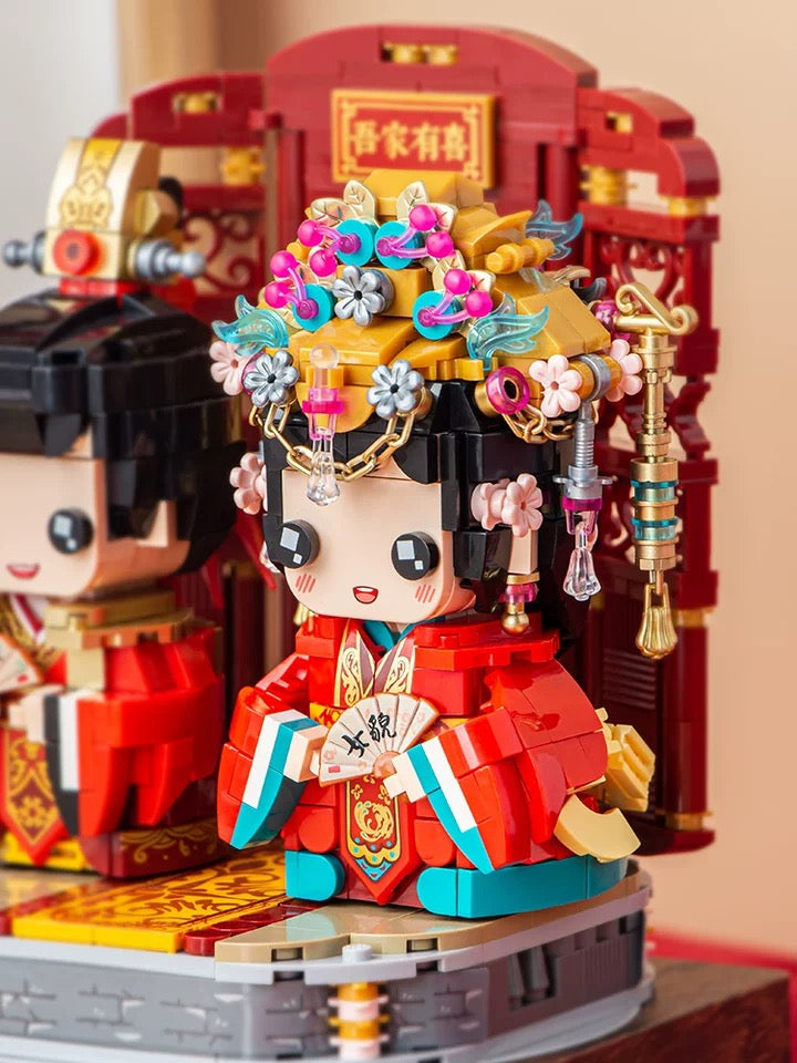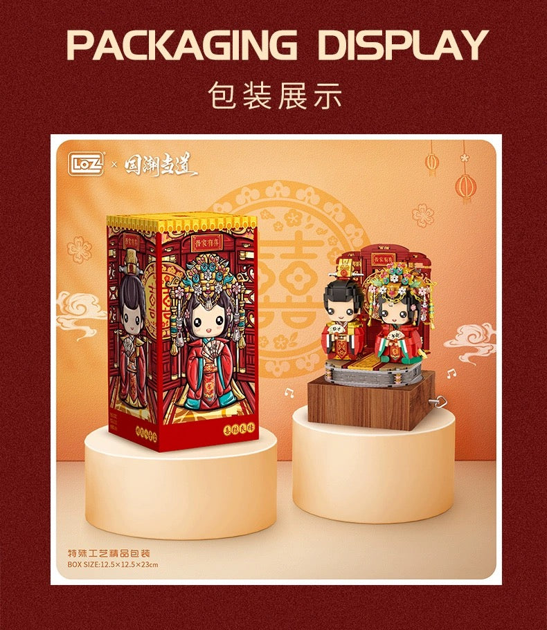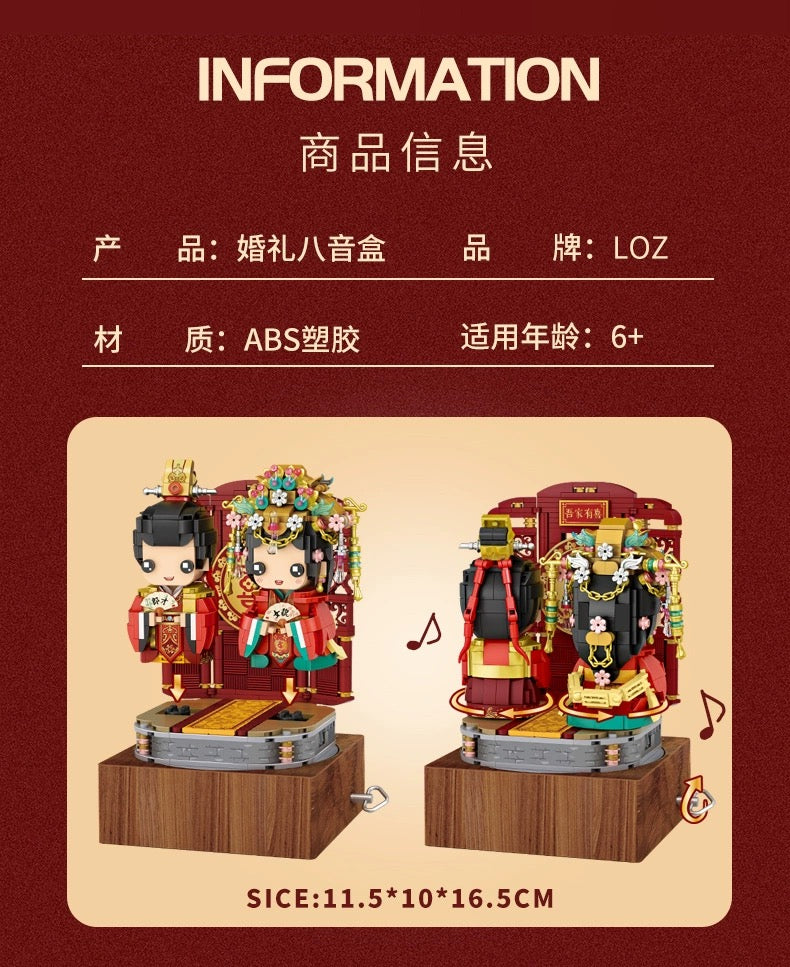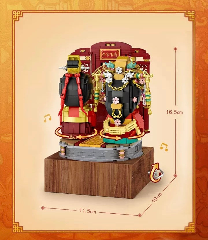 Loz Building Mini Block Characters Music Box | Chinese Wedding Bridegroom Bride - Valentine Wedding DIY Handmade Gift