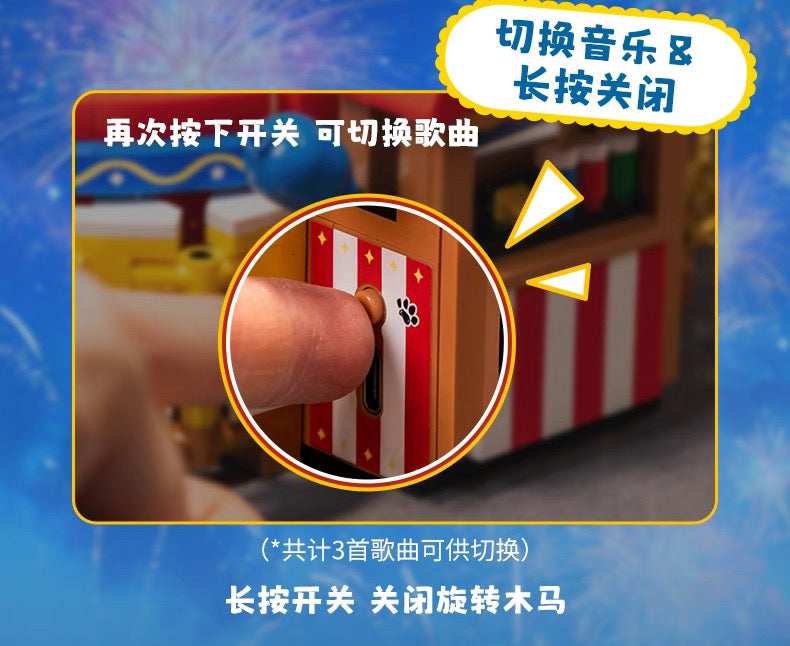 Pan Tasy x Peanut Music Box Series | Happy Merry Go Round Carousel - Lovely Dog and Yellow Birds Building Blocks Toy Collections