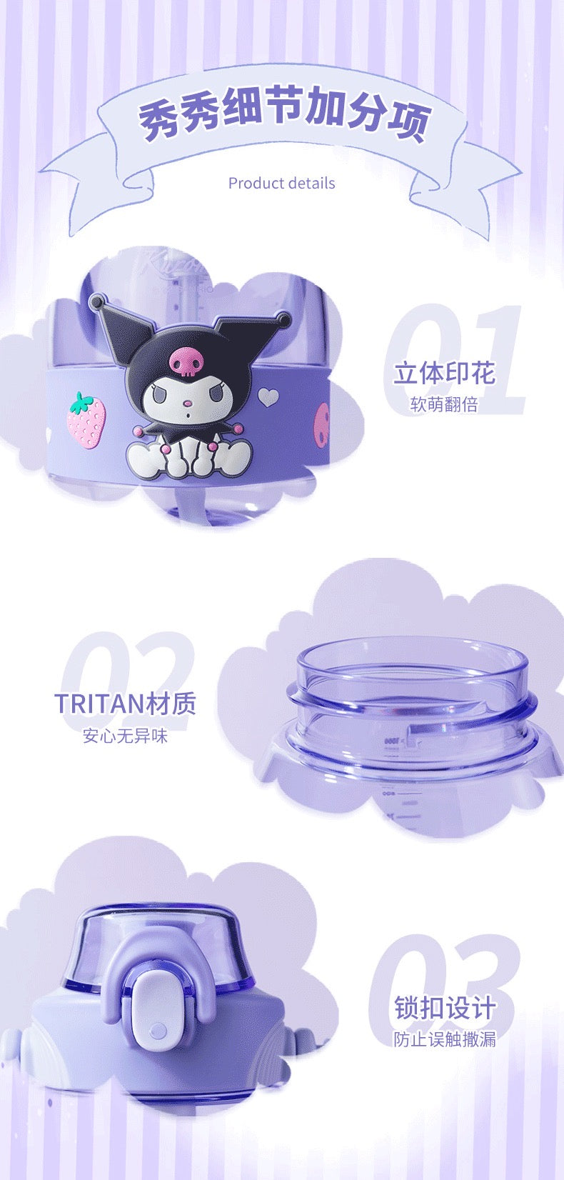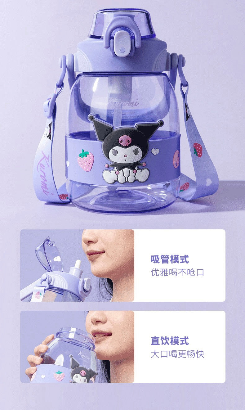 Sanrio 1200ml Big Water Bottle with Straw My Melody Kuromi Cinnamoroll Pochacco - for Cool Water