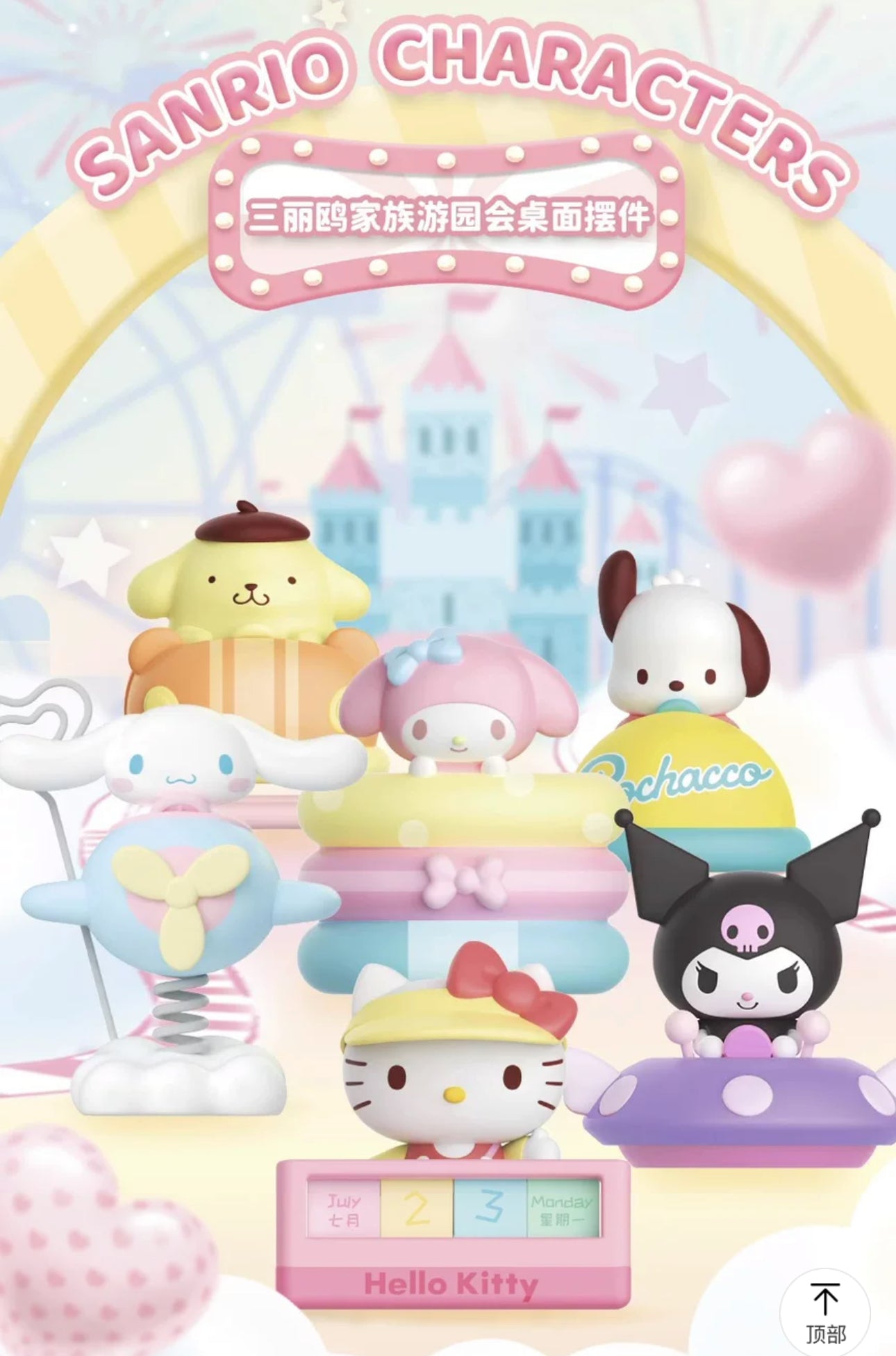 Top Toy x Sanrio Characters Amusement Park Desk Items | Hello Kitty My Melody Kuromi Cinnamoroll Pompompurin Pochocca - Collectable Toys Mystery Kawaii Stationery