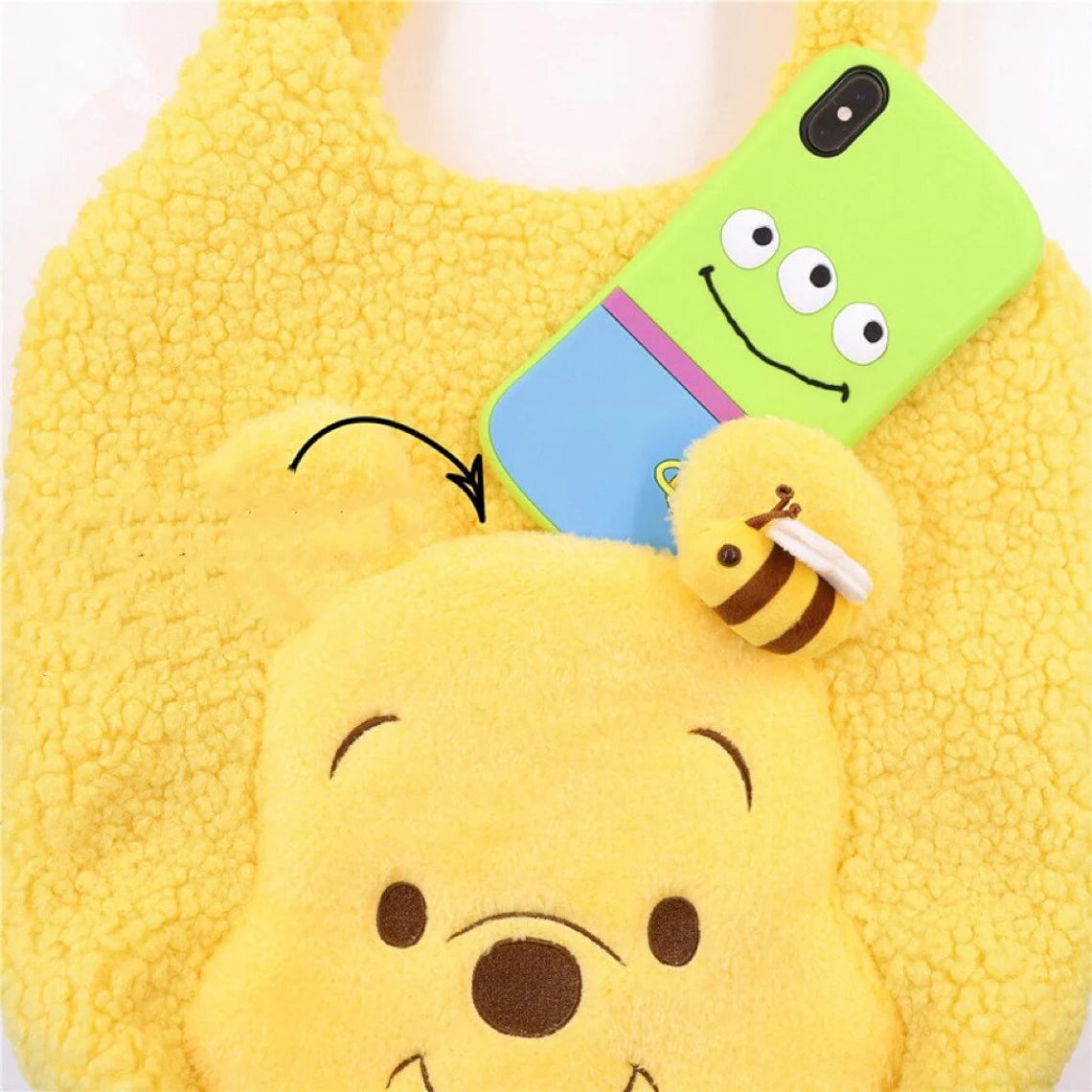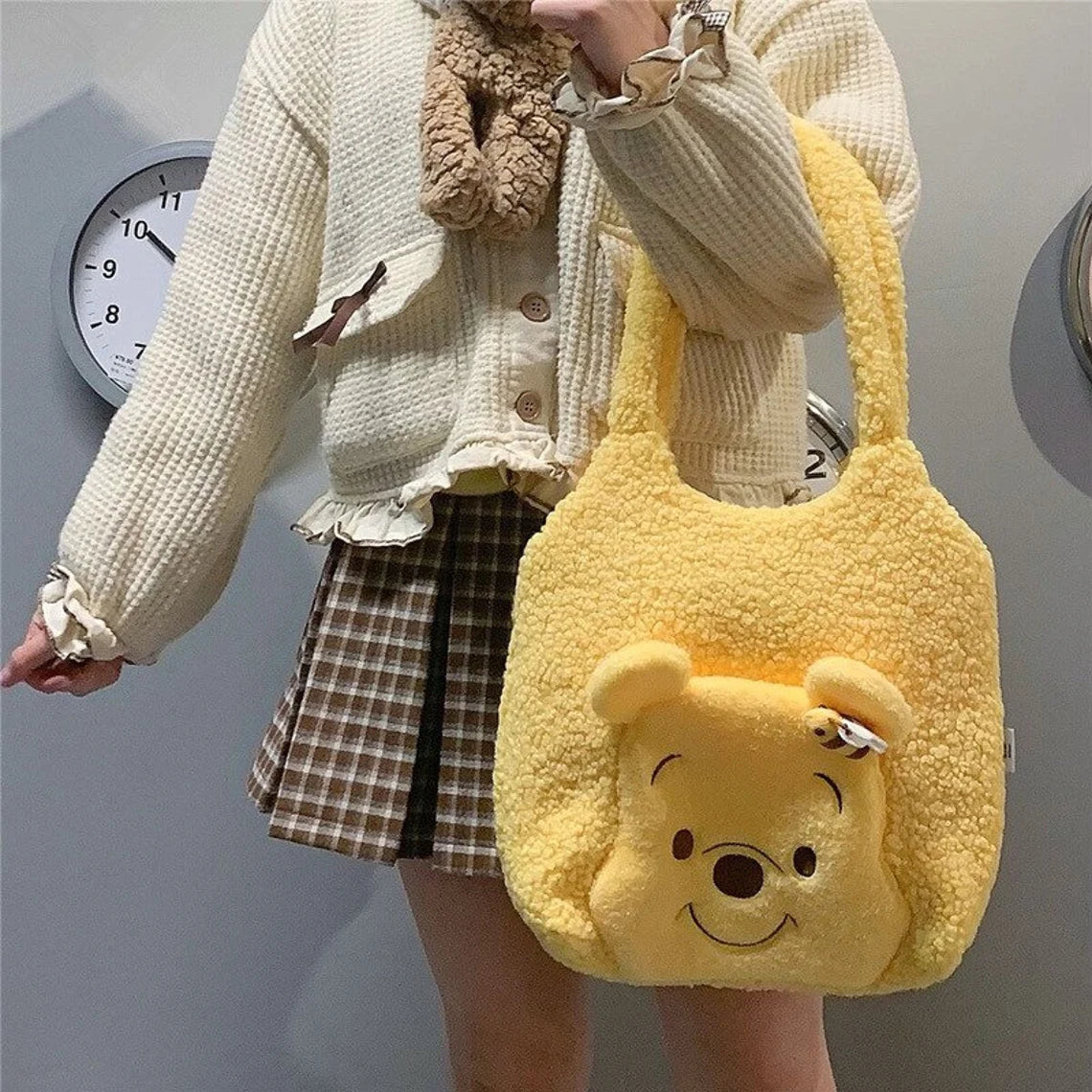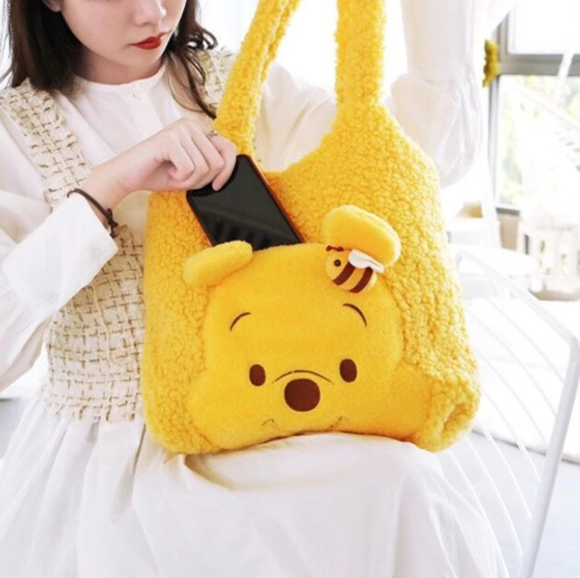 Disney Winnie The Pooh Big Head Yellow Fluffy Tote Shoulder Bag