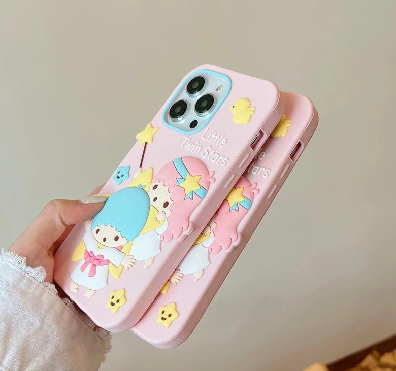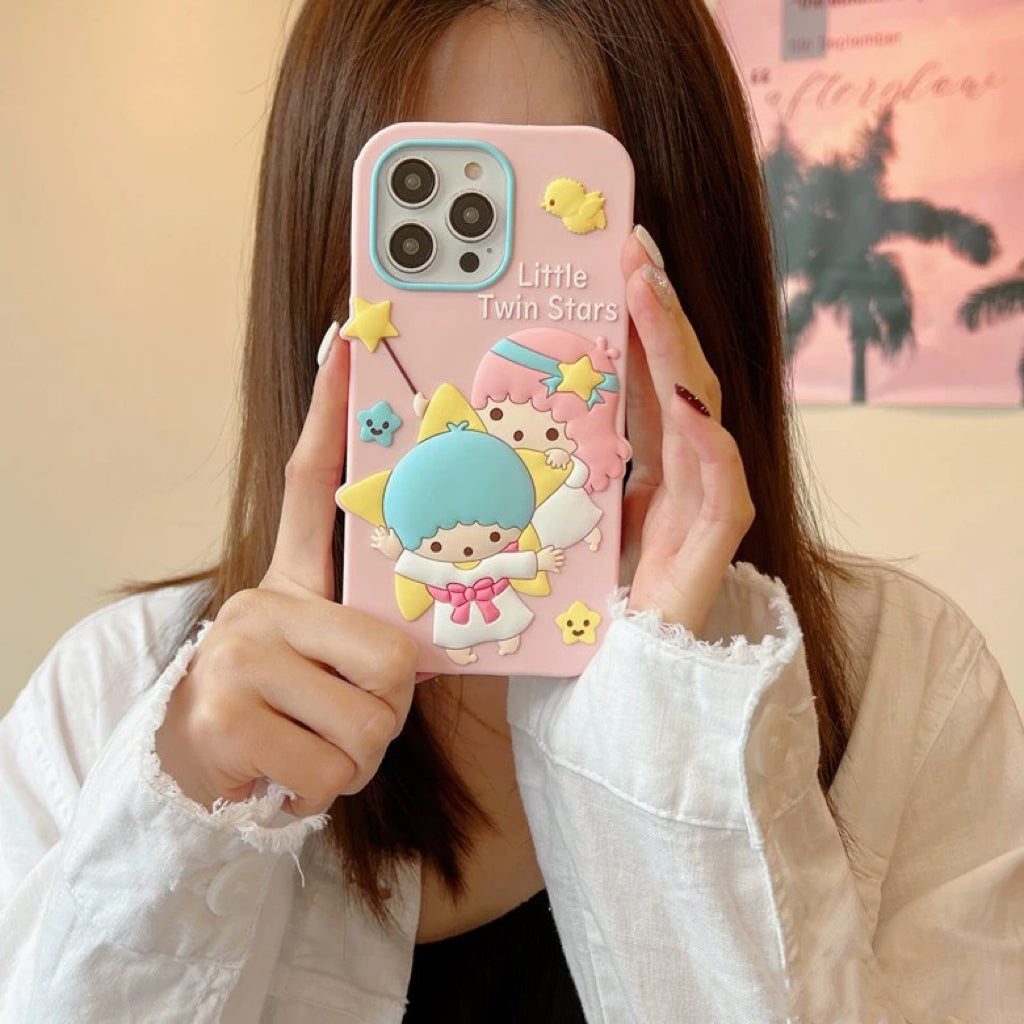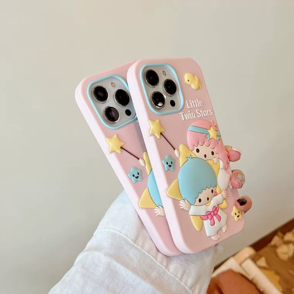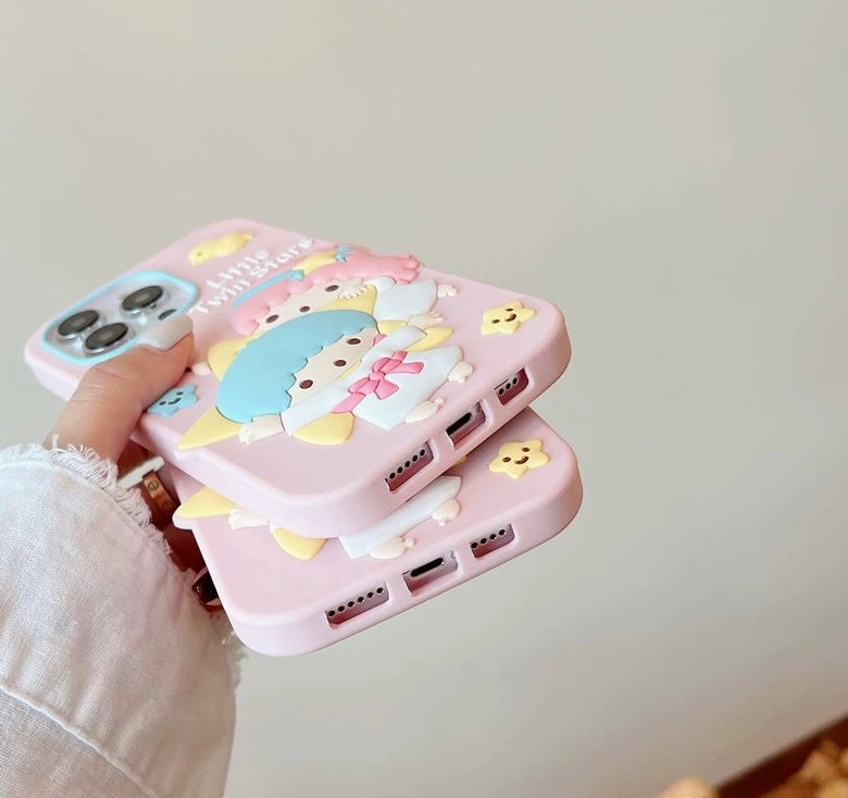 Big Little Twin Stars Pink Soft iPhone Case 11 12 13 14 15 Pro Promax