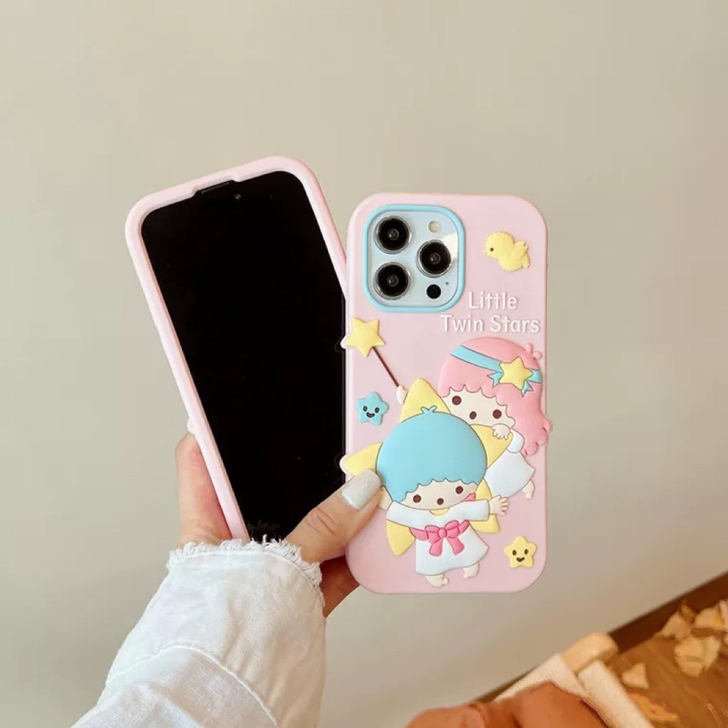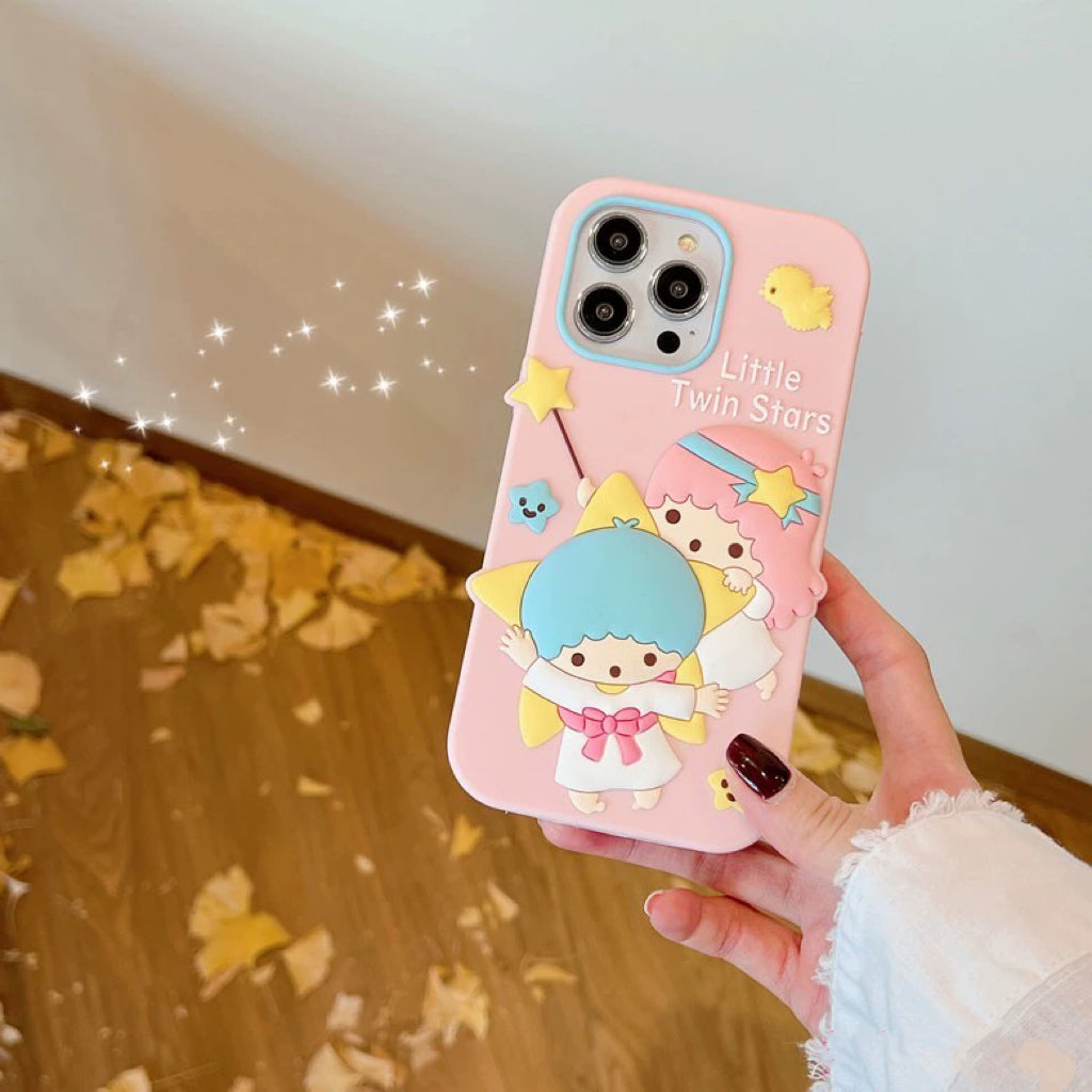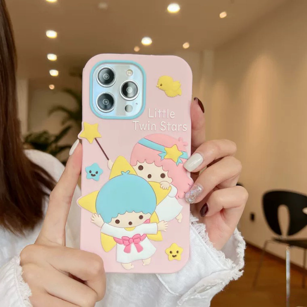 Big Little Twin Stars Pink Soft iPhone Case 11 12 13 14 15 Pro Promax