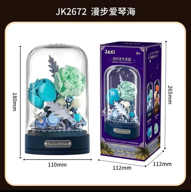 Block Building Romantic Flower Music Box | Blue Rose Autumn Flower - DIY Valentine Wedding Handmade Gift