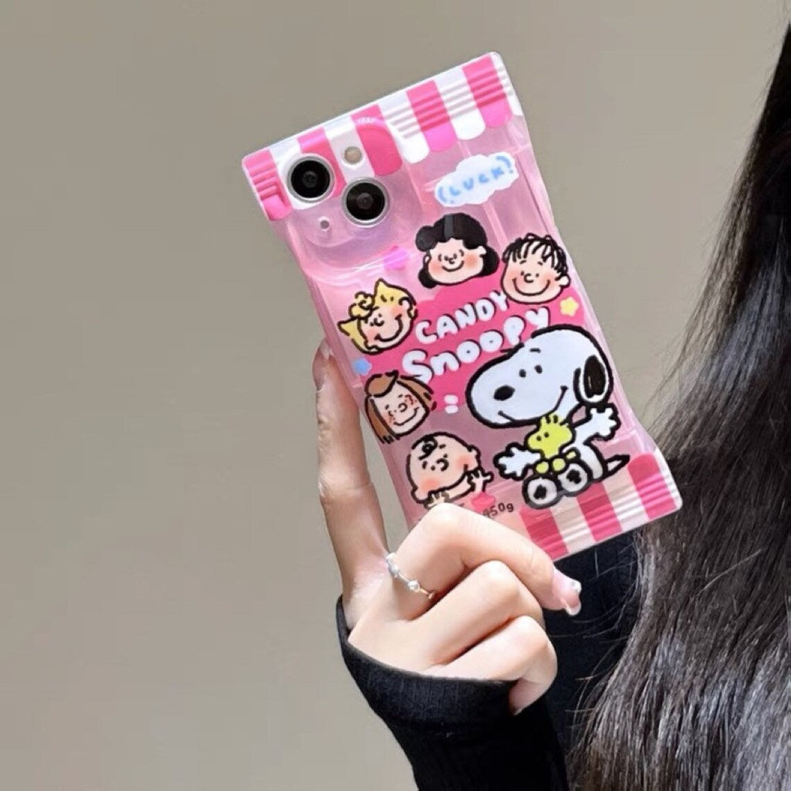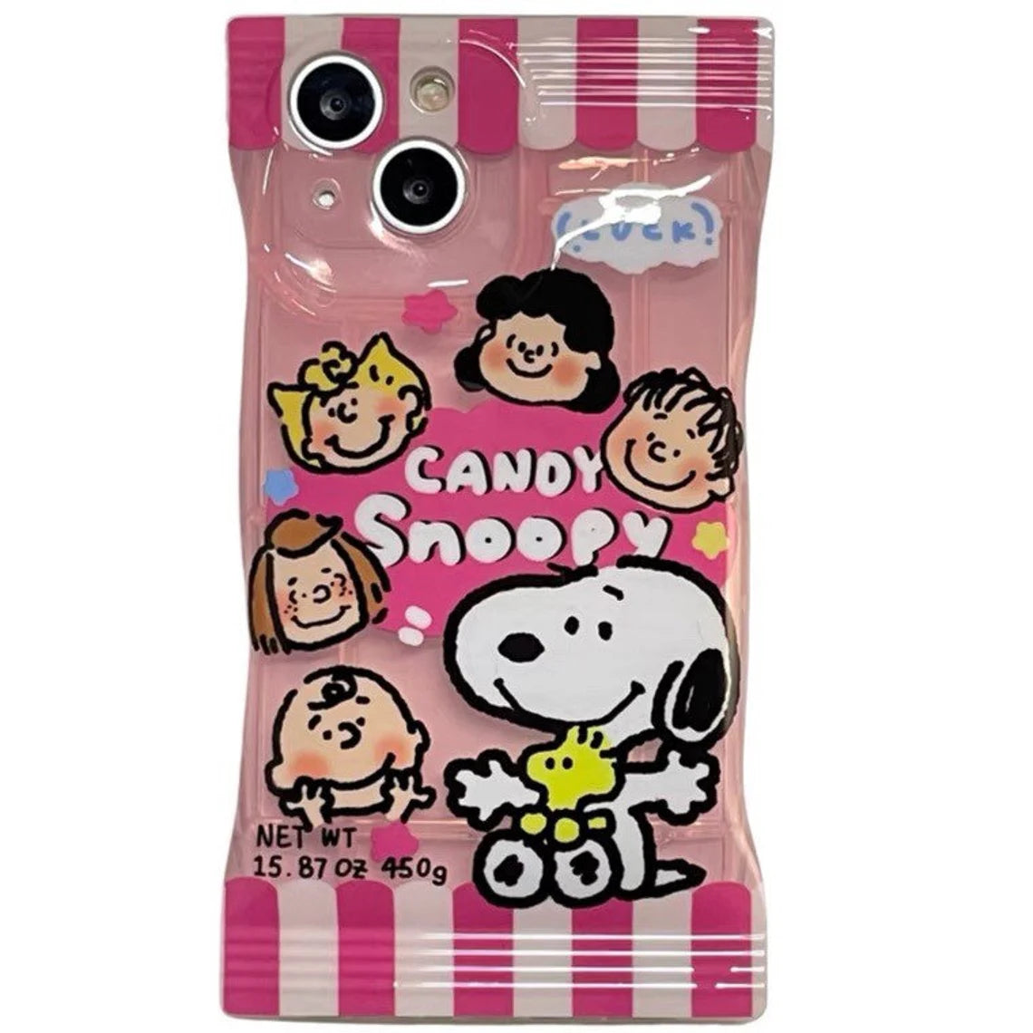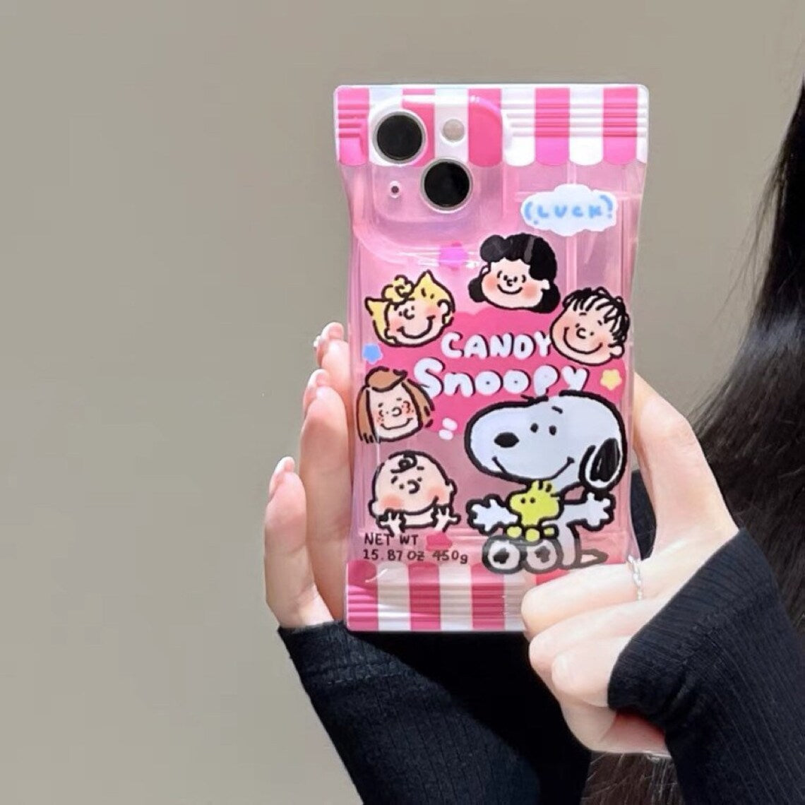 Cartoon Design Cute White Dog and Friends Charlie Sally Linus Candy Snack Packing iPhone Case 14 13 12 11 XS XR Max