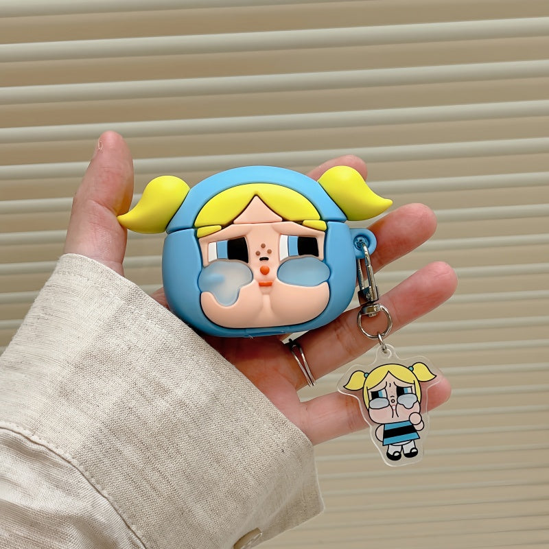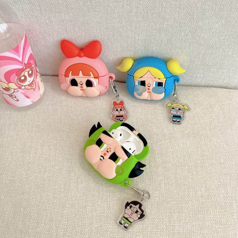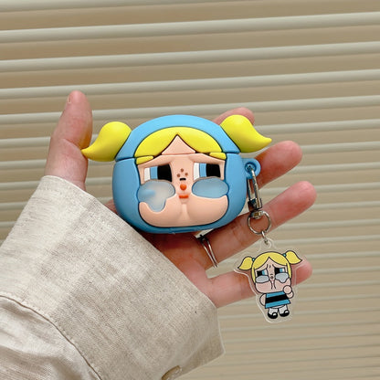 Cartoon Power Police Girls X Cry Baby Pink Blue Green Case with Keychain - AirPods AirPodsPro AirPods3 AirPods4 Case