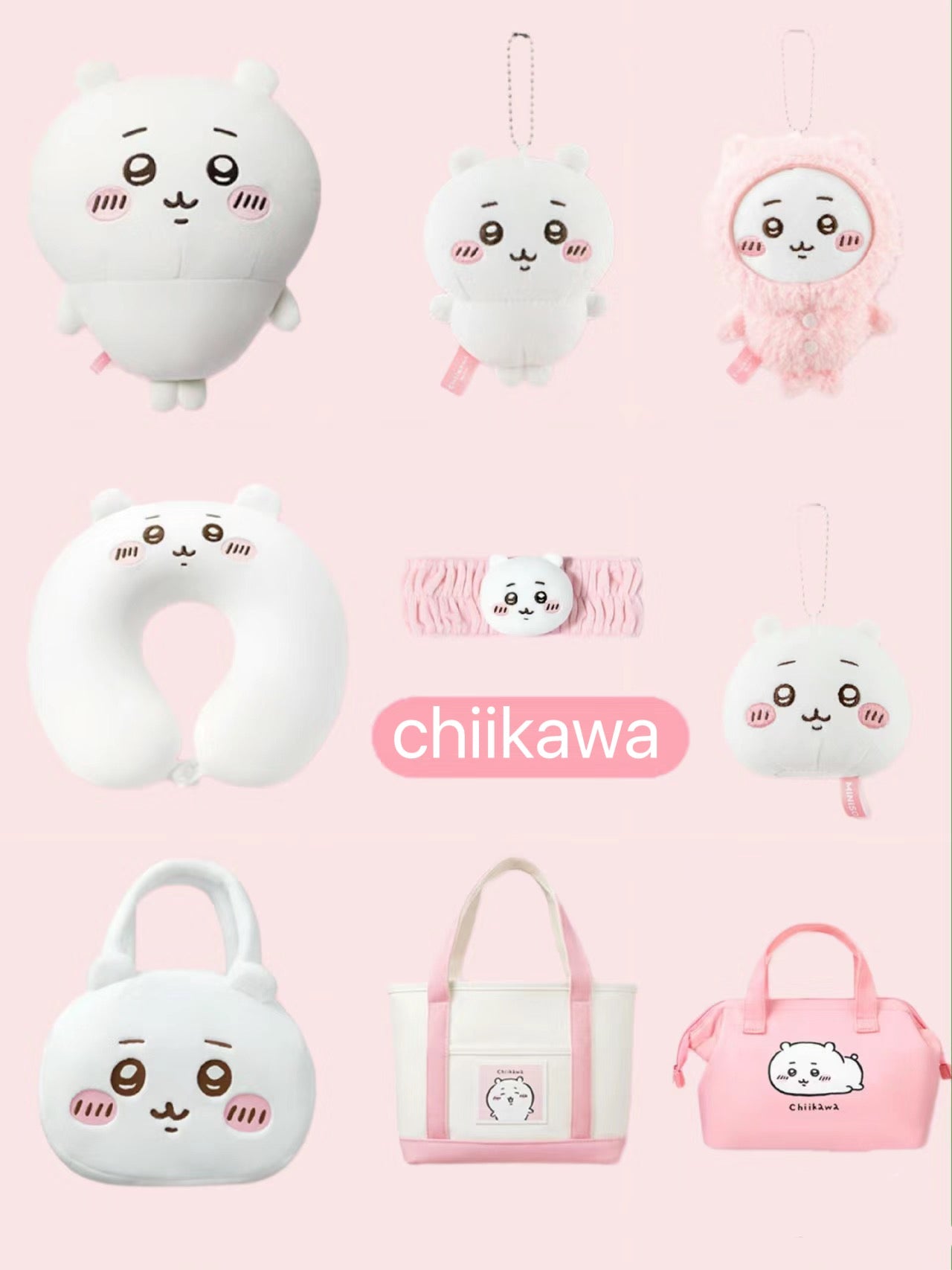 ChiiKawa X Miniso | ChiiKawa Full Set 9pcs items Mini Plush Doll Keychain Headband Neck Pillow Bag - Kawaii items Room Decoration doll