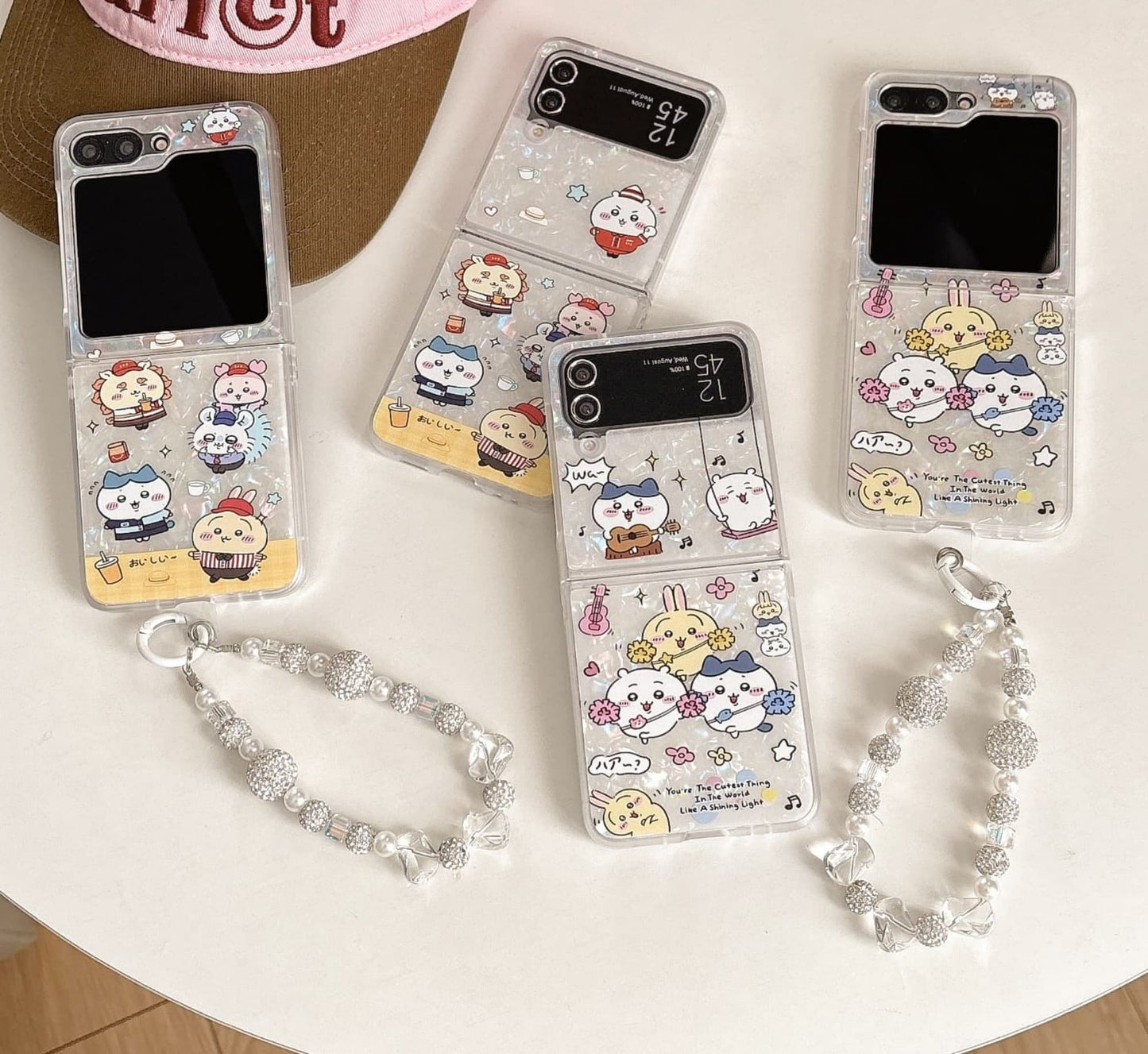 Cute Cartoon Chiikawa Peal Case | Cheer Up & Fast Food Party - Phone Case Samsung Galaxy Z Flip 3 4 5 6