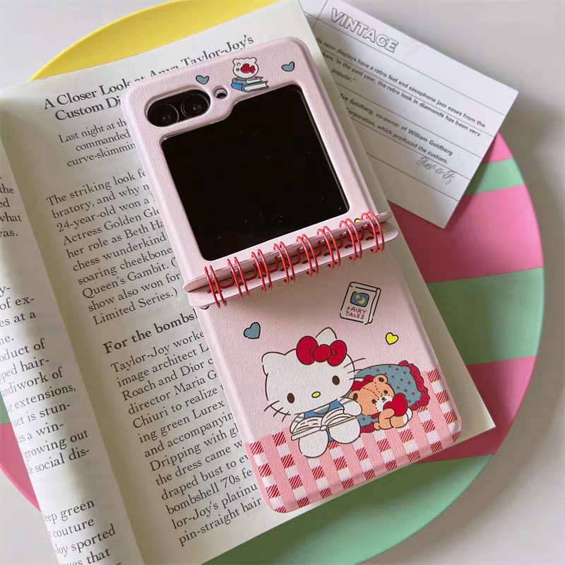 Cute Cartoon Notebook Style | Hello Kitty Hot Pink & Pink - Phone Case Samsung Galaxy Z Flip 3 4 5 6