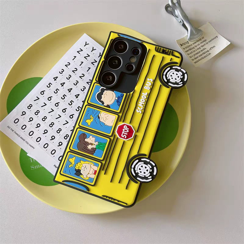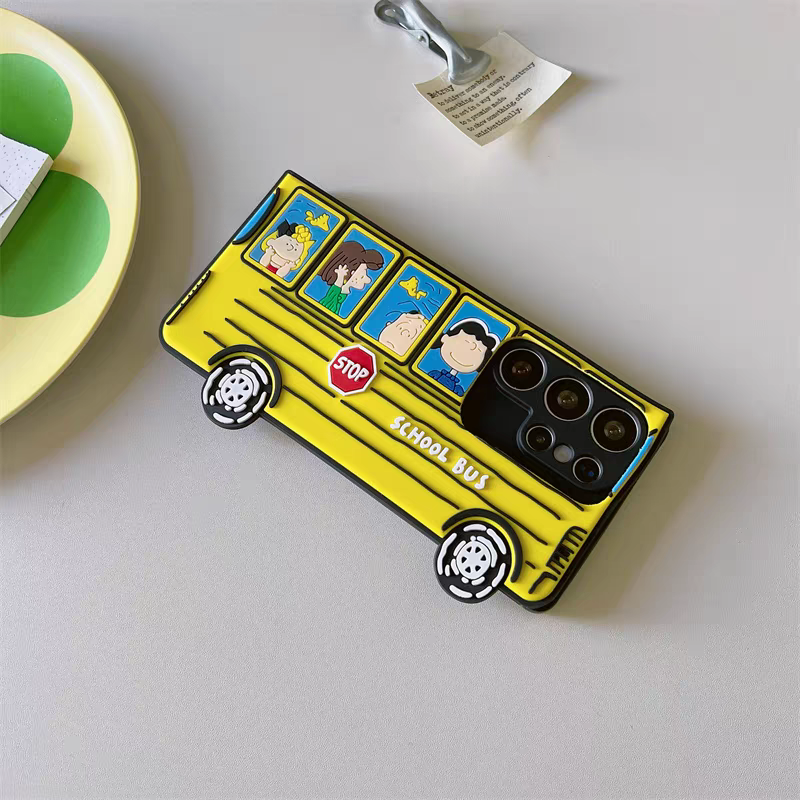 Cute Cartoon White Dog and Friends | Yellow School Bus - Phone Case Samsung Galaxy S25 S24 S23 S22 Plus Ultra