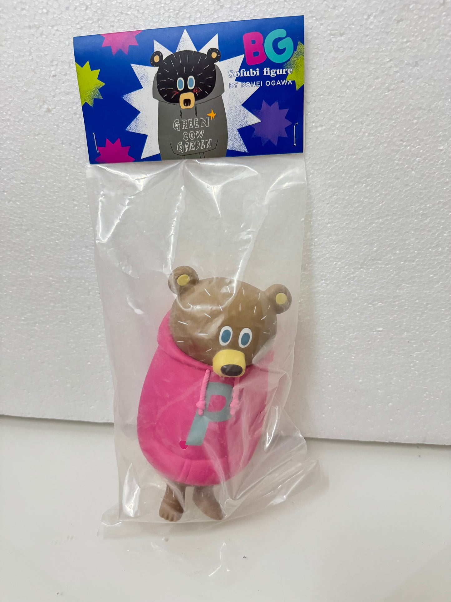 How2work Japan Artist BG Bear | Hot Pink Hoddie Bear - Sofubi figure Soft Vinyl Retried Rare