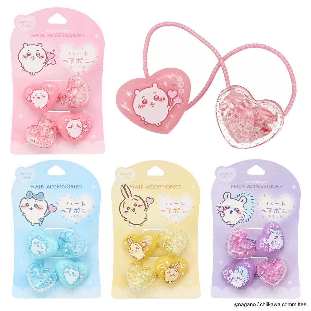 Japan ChiiKawa | ChiiKawa Hachiware Usagi Momonga Cute Icon with Bling Heart Ponytail Holders Scrunchies Kawaii items Cute Hair Accessories