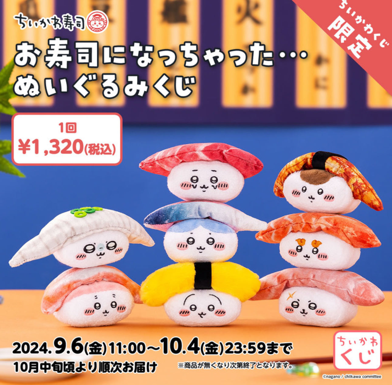 Japan ChiiKawa Sushi Lottery Serise | ChiiKawa Hachiware Usagi Momonga Kurimanju Rakko Shisa Crab - Mini Plush Doll 10cm Kawaii Room Decoration