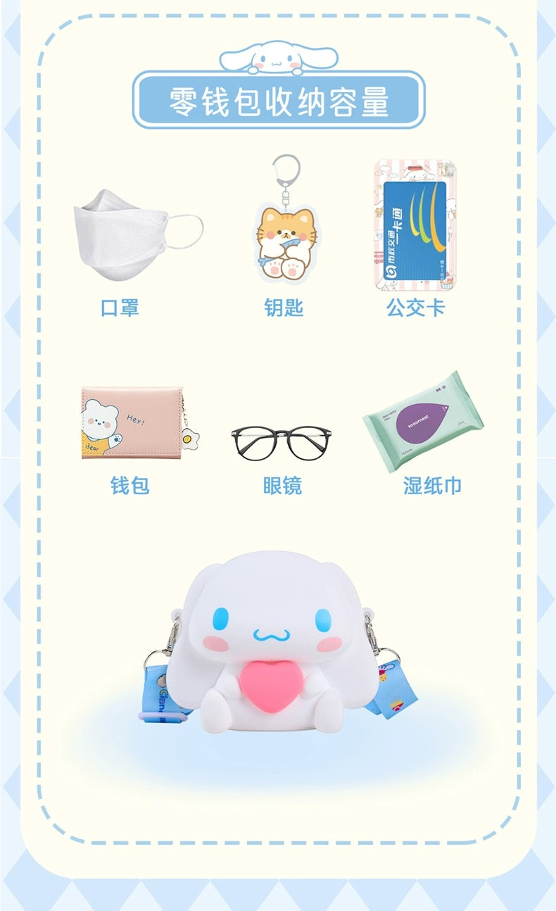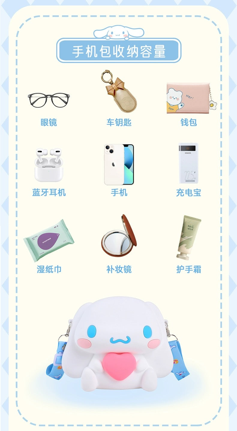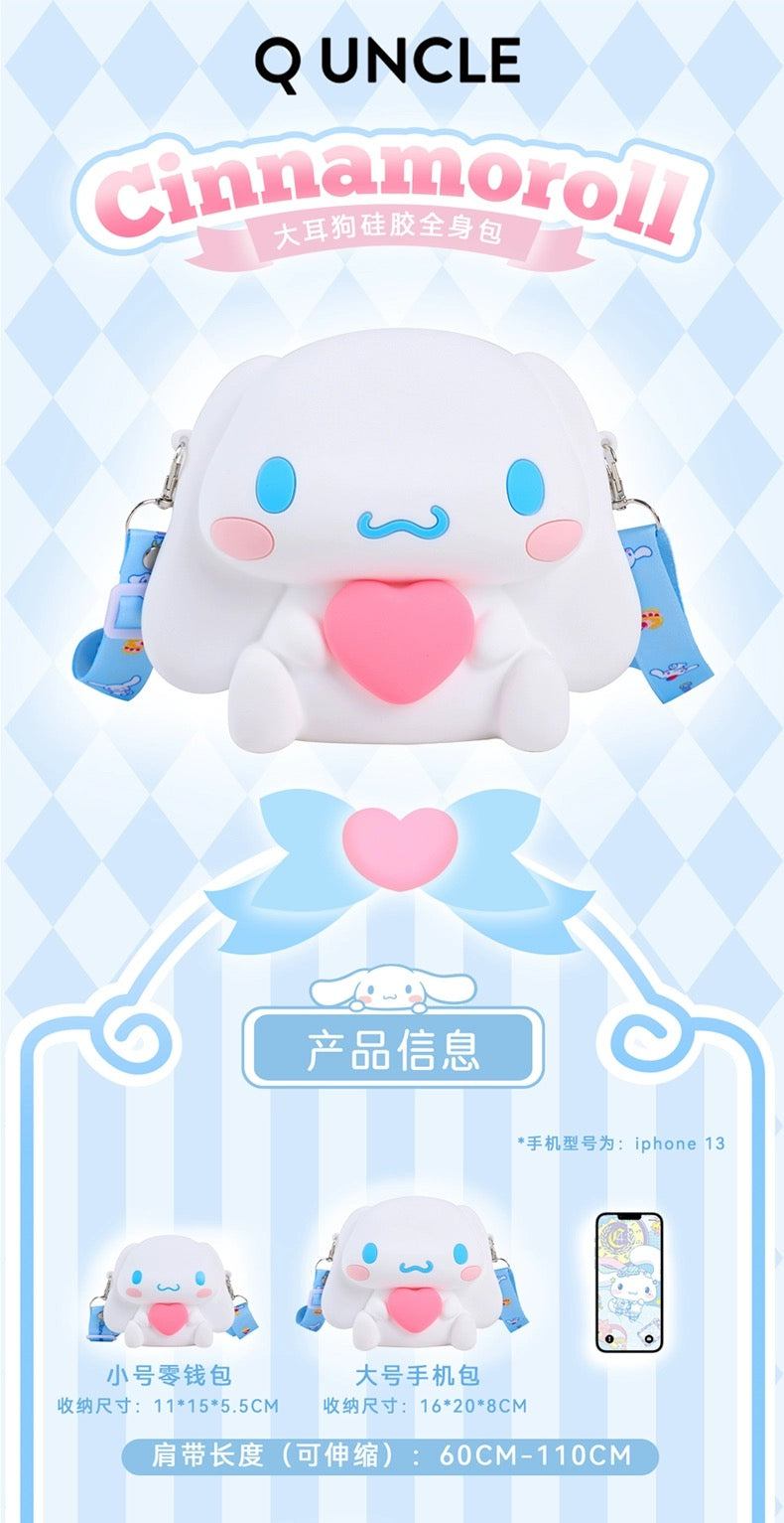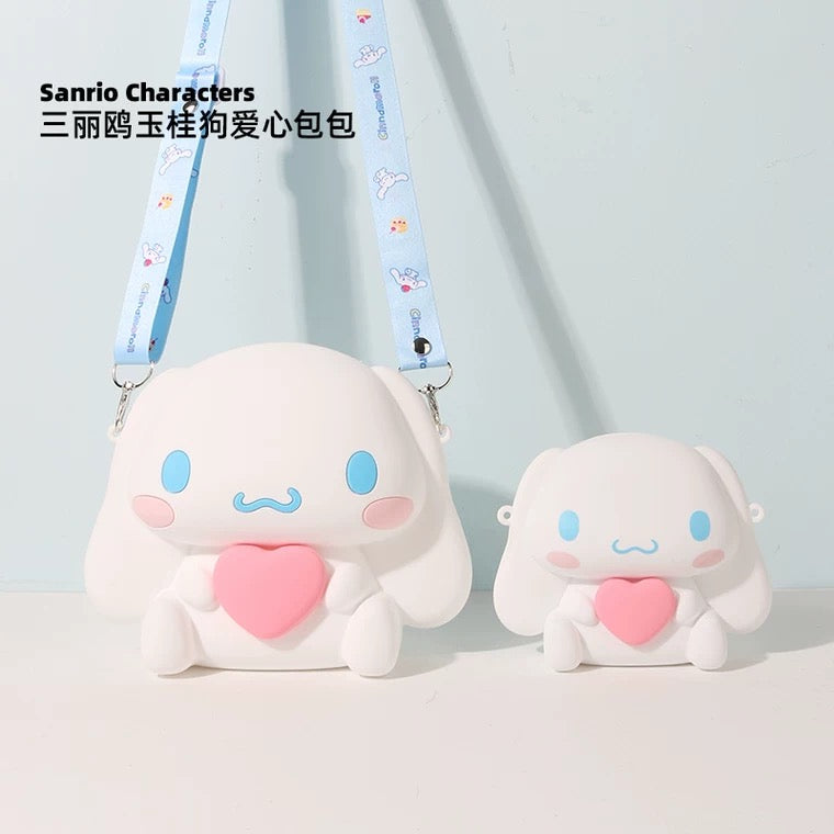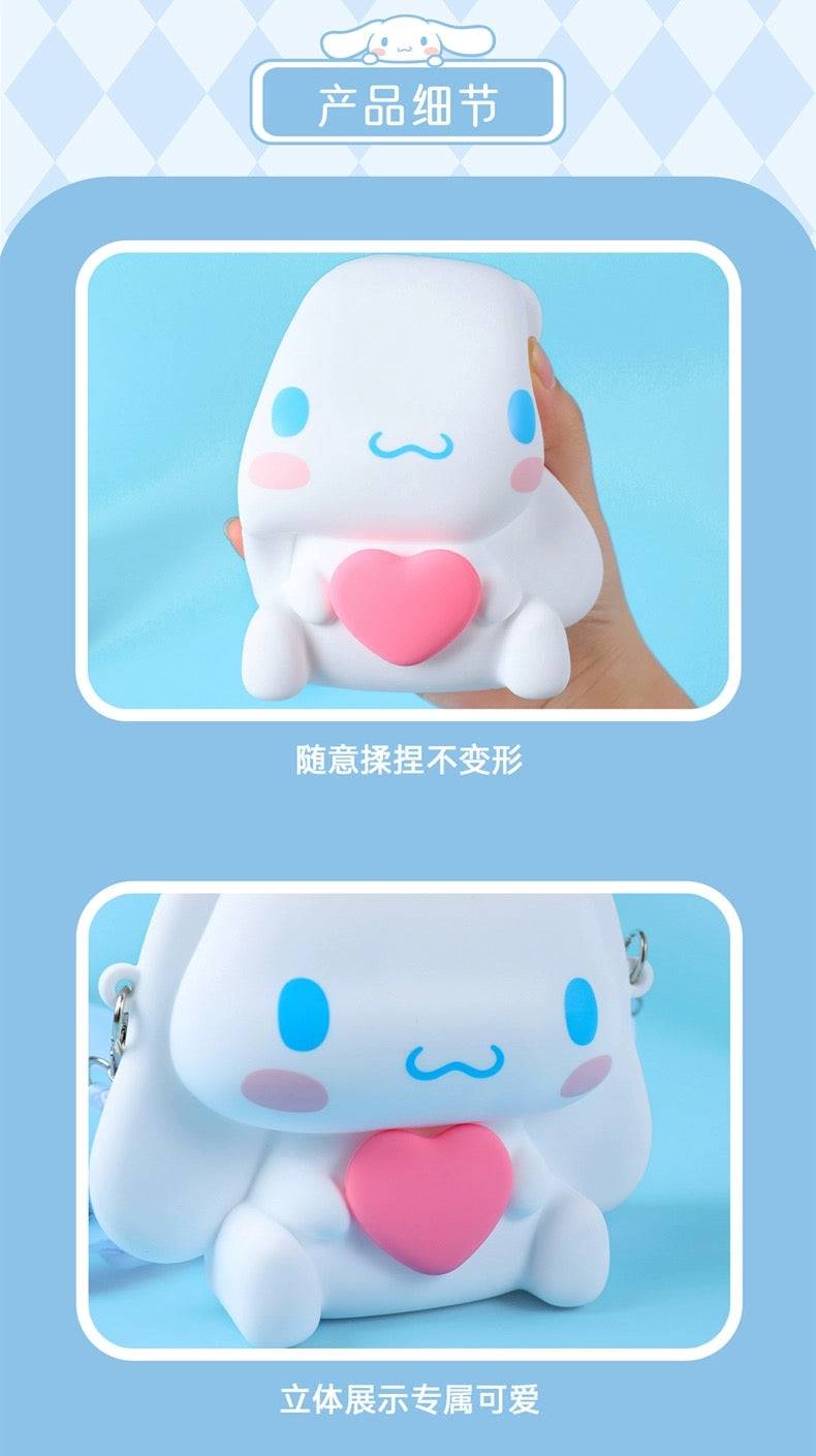 Japan Sanrio Silicone 3D Sit Pose Shoulder Bag | Cinnamoroll with Heart - Kawaii Bag Birthday Girlfriend Children Gift