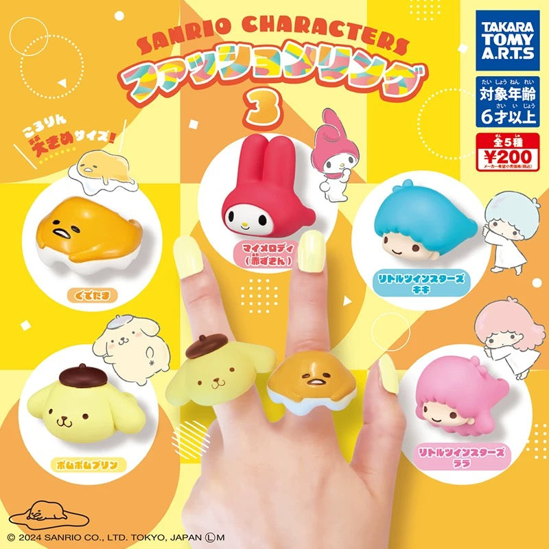 Japan Takara Tomy ARTS Sanrio Rings Part 3 | My Melody Little Twin Stars Kiki Lala Pompompurin Gudetama - Full Set of 5