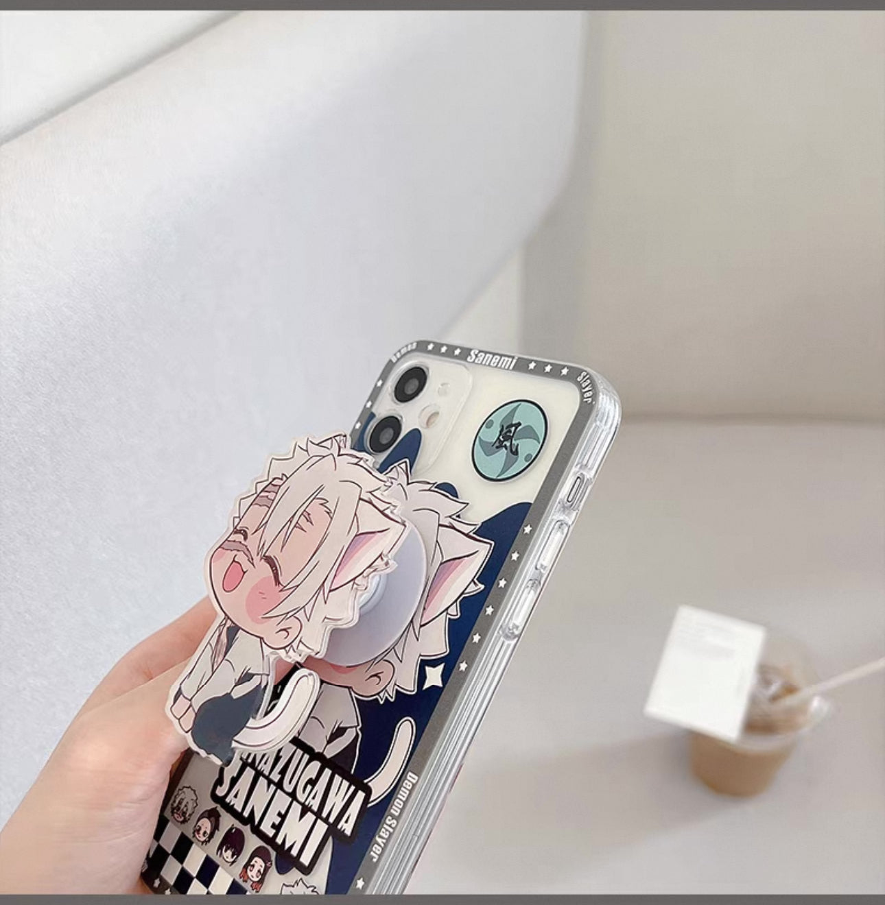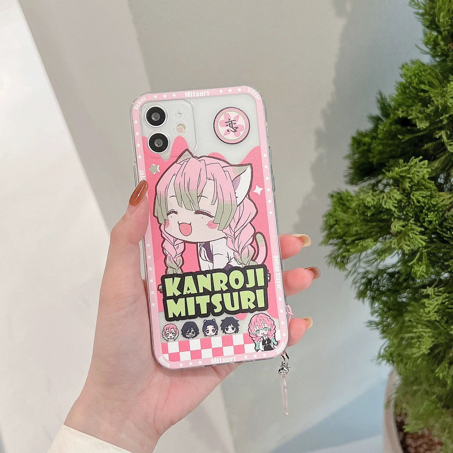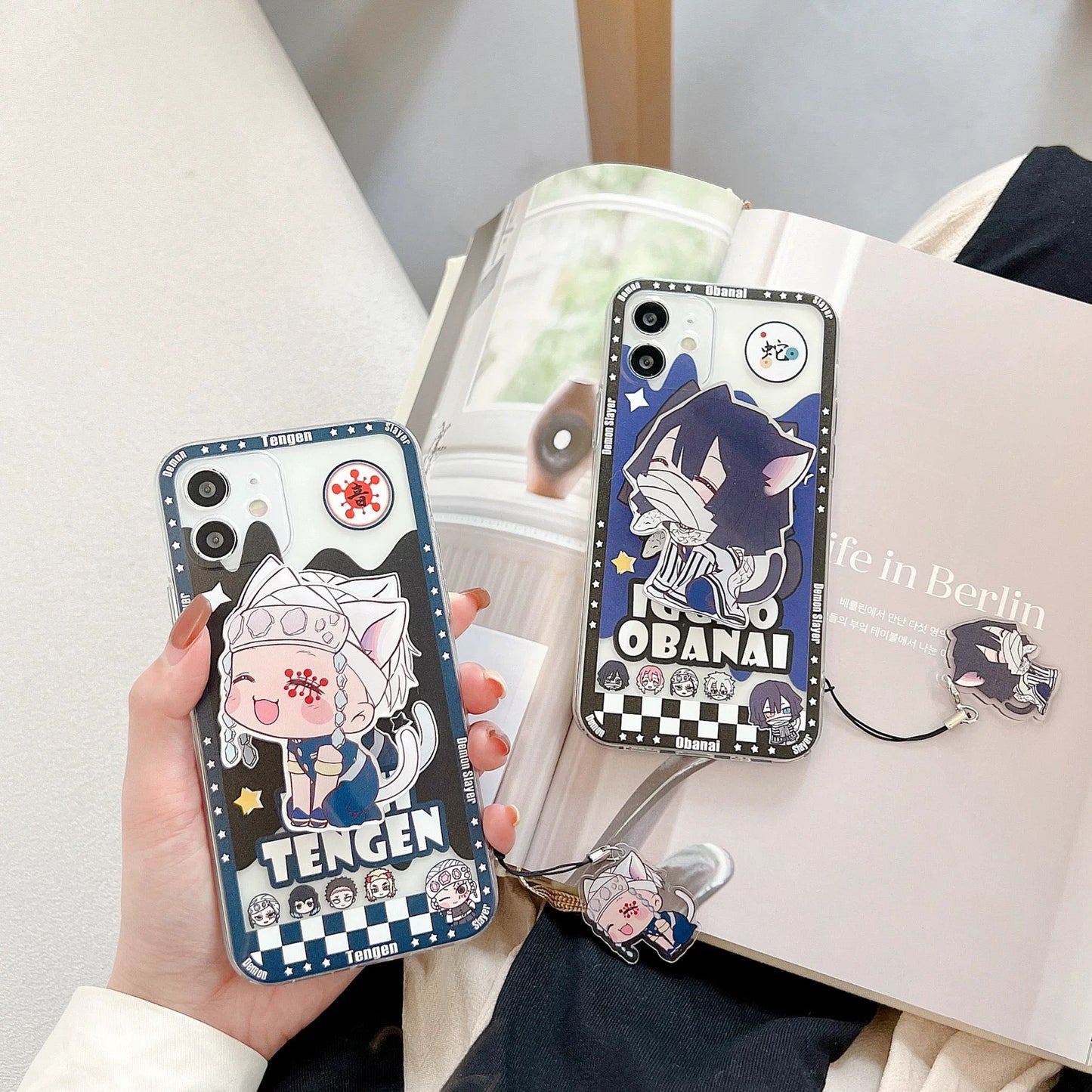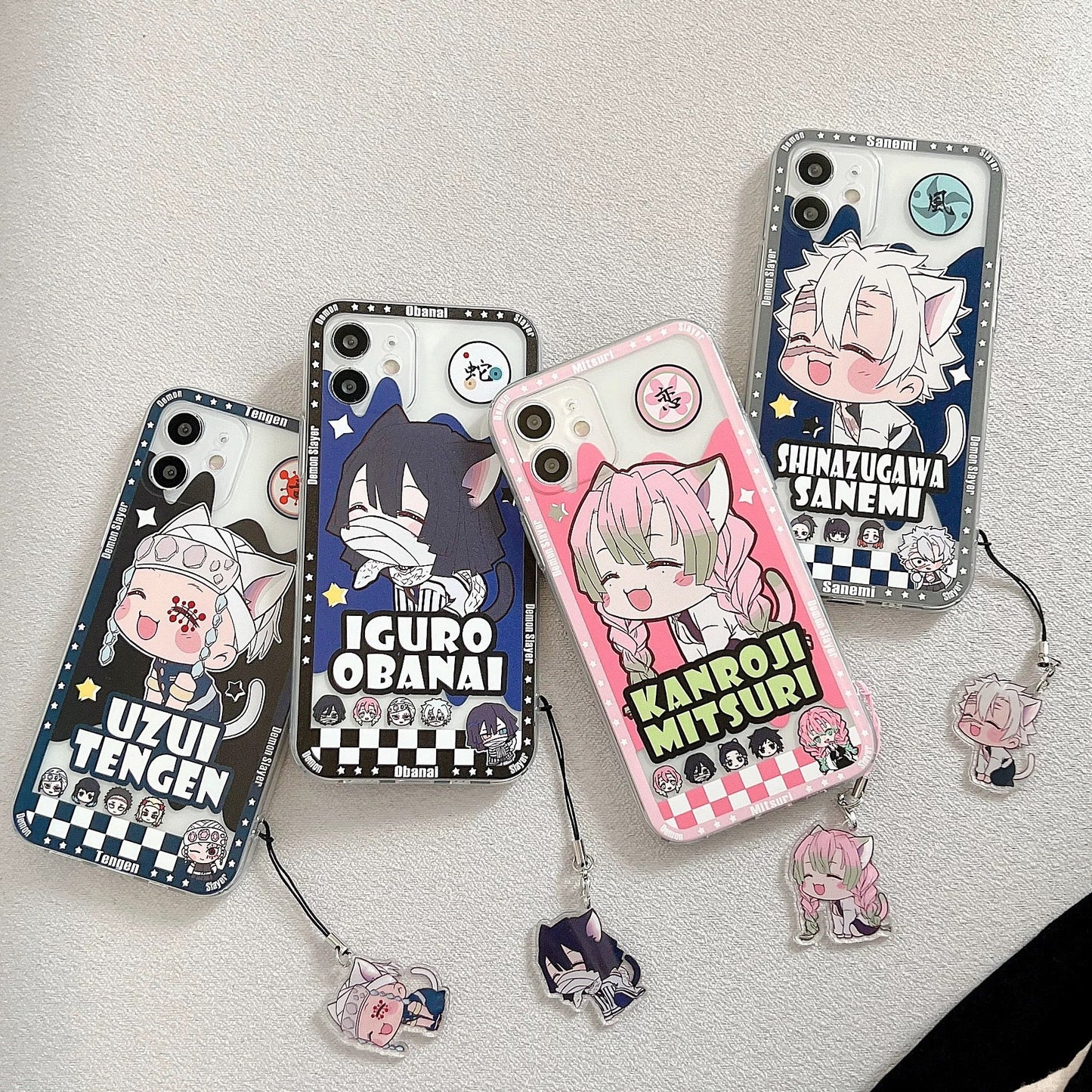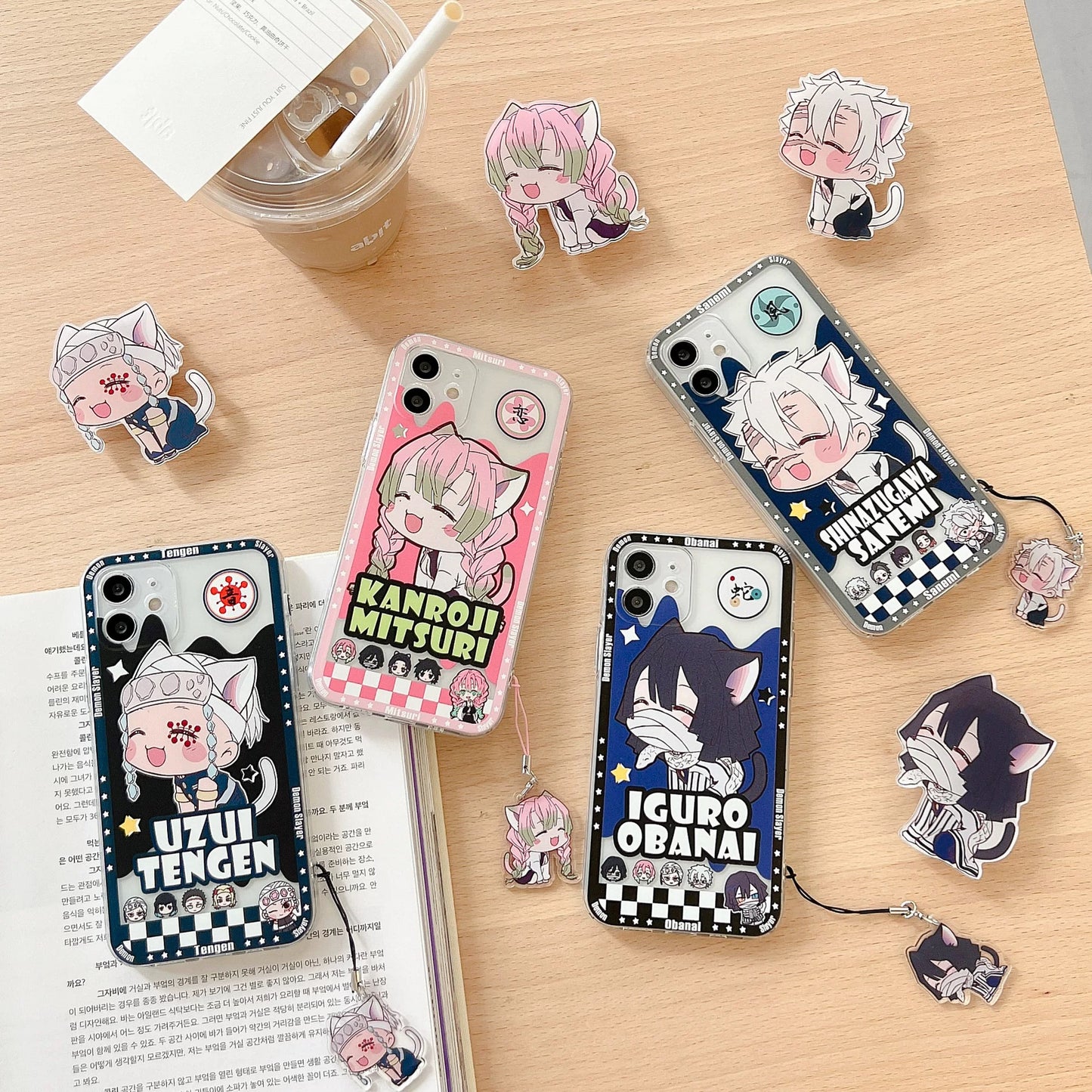 Japanese Anime Kimetsu no Yaiba Demon Slayer Cat Version | Tengen Obanai Mitsuri Sanemi with Phone Stand - iPhone Case PLUS SE2 XS XR X 11 12 13 14 15 16 Pro Promax 12mini 13mini