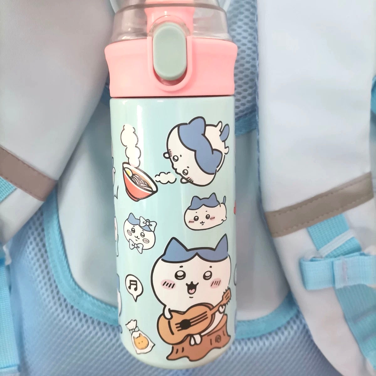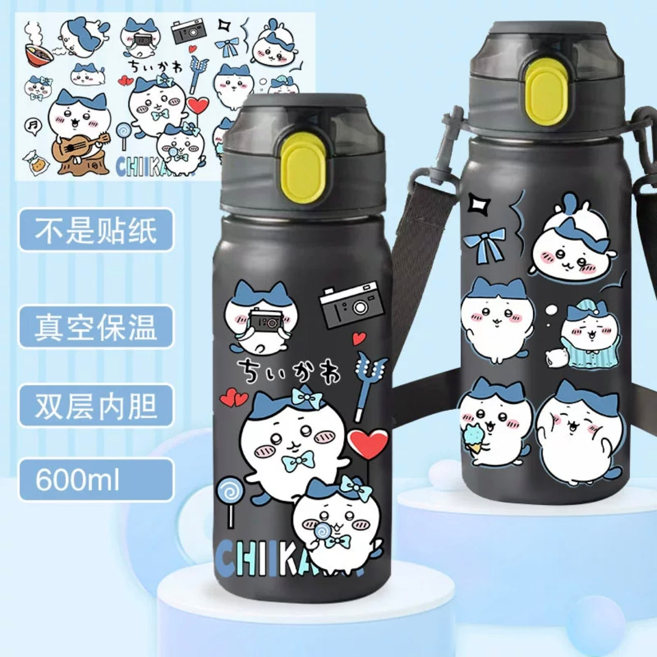 Japanese Cartoon ChiiKawa Tumbler | Hachiware Shoulder Water Bottle with Straw and Strap - 316 Stainless Steel Lovely Cup
