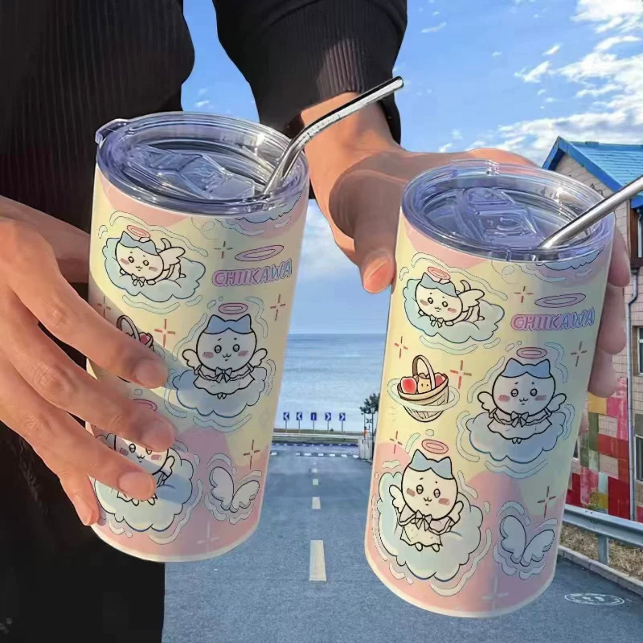 Japanese Cartoon ChiiKawa Tumbler with Straw | ChiiKawa Hachiware Usagi Angel Devil - Warm Cool Lovely Coffee Cup