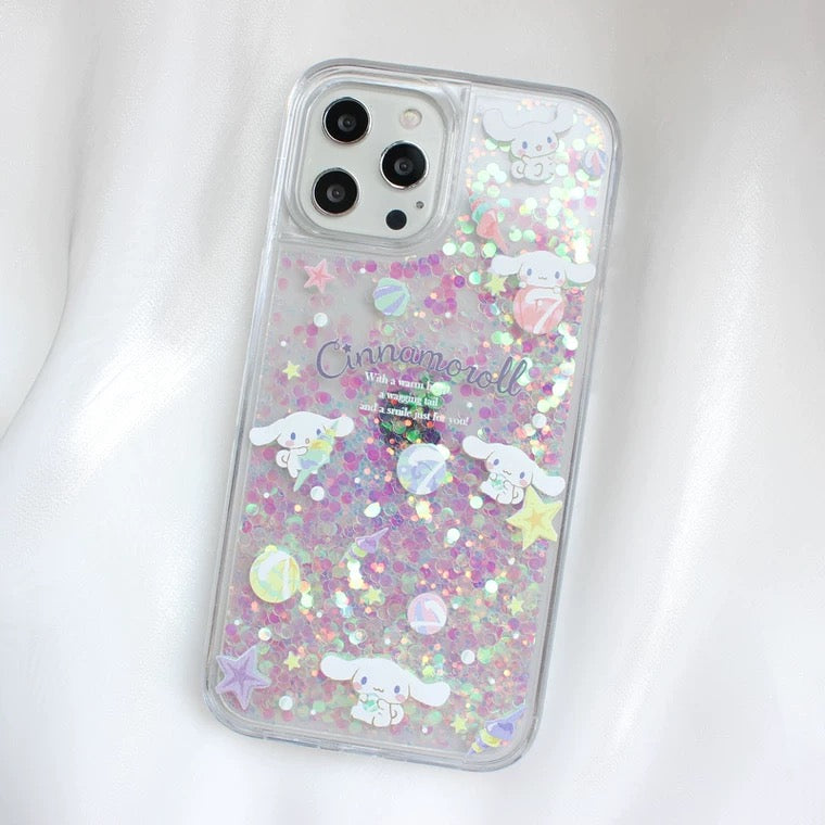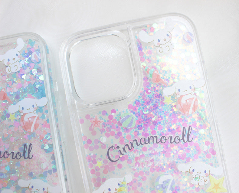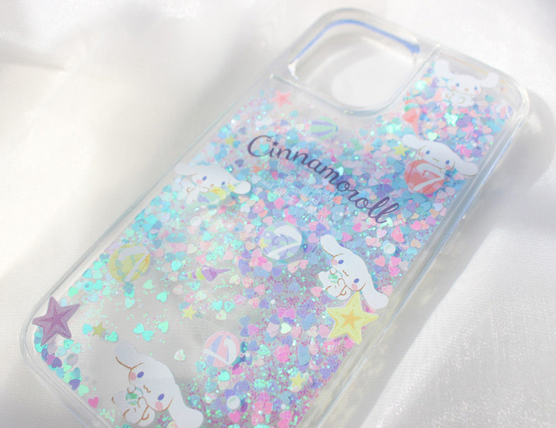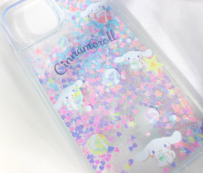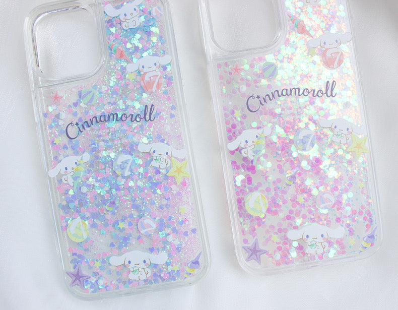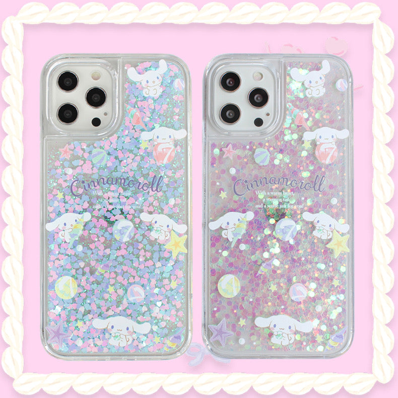 Japanese Cartoon Cinnamoroll Shells - Silver Pink Heart Glitter QuickSand iPhone Case 6 7 8 PLUS SE2 XS XR X 11 12 13 14 15 16 Pro Promax 12mini 13mini