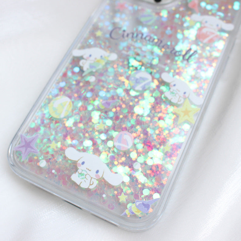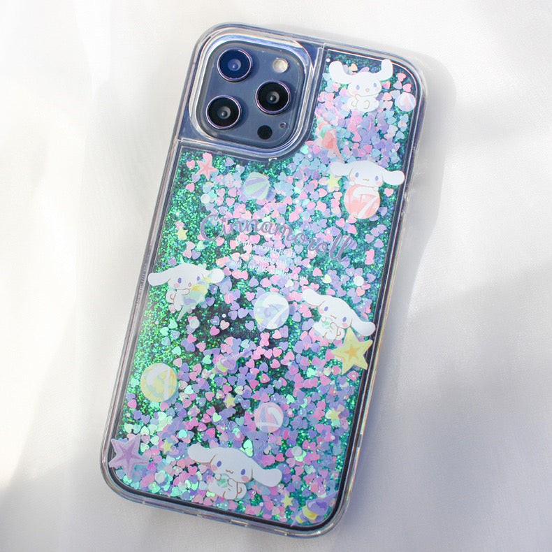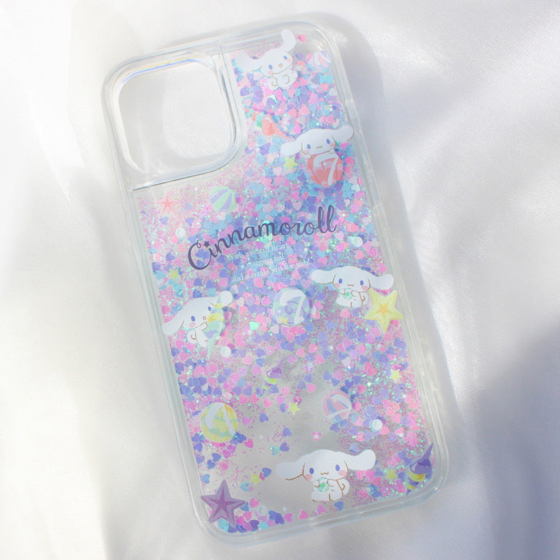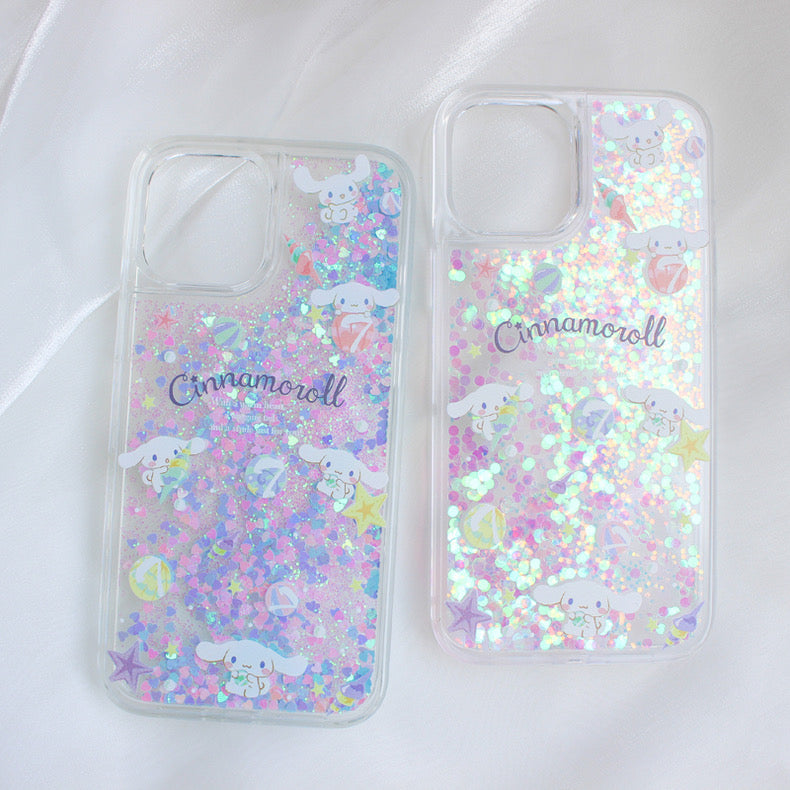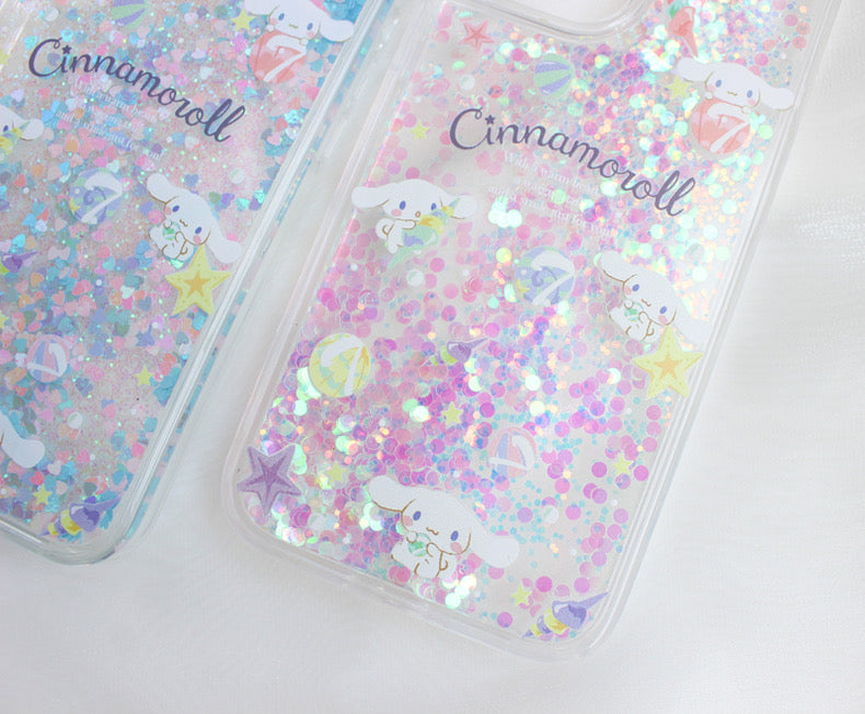 Japanese Cartoon Cinnamoroll Shells - Silver Pink Heart Glitter QuickSand iPhone Case 6 7 8 PLUS SE2 XS XR X 11 12 13 14 15 16 Pro Promax 12mini 13mini