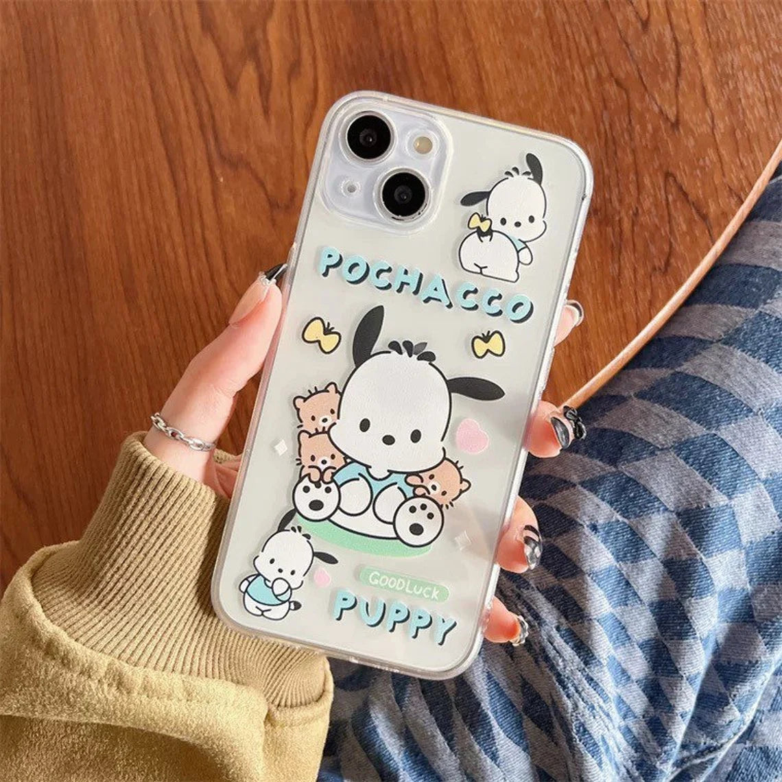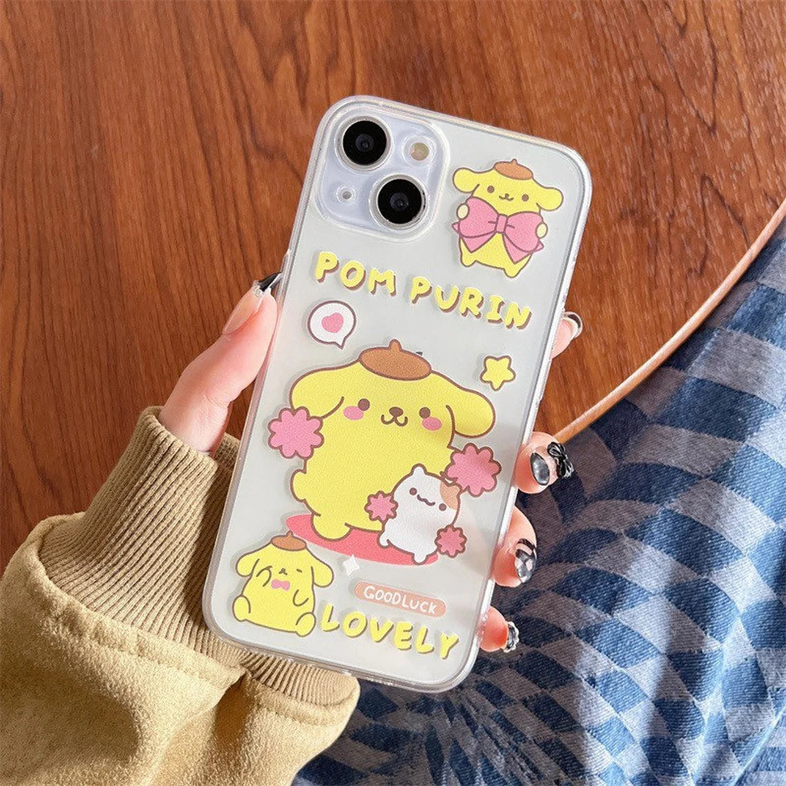 Japanese Cartoon Good Luck My Melody Kuromi Cinnamoroll Pompompurin Pochacco iPhone Case 6 7 8 PLUS SE2 XS XR X 11 12 13 14 15 16 Pro Promax 12mini 13mini