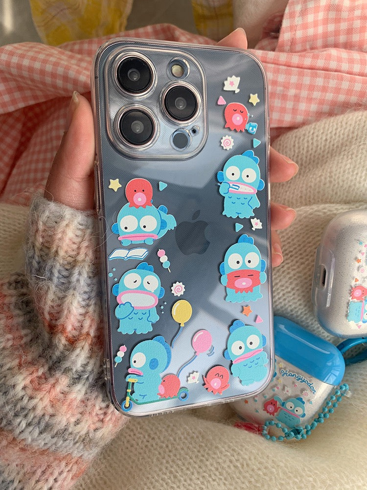 Japanese Cartoon Hangyodon with friends Soft Case iPhone Case XR XS X 11 12 13 14 15 Pro Promax Plus mini