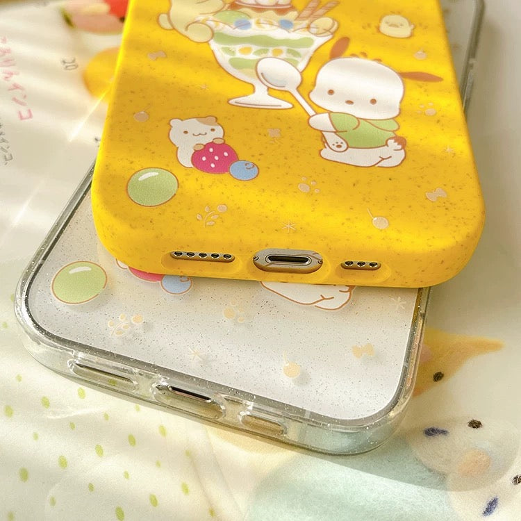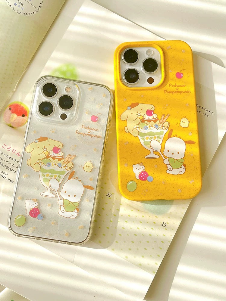 Japanese Cartoon Sanrio Pompompurin & Pochacco Pudding Ice Cream Desert - iPhone Case 12 13 14 15 Pro Promax