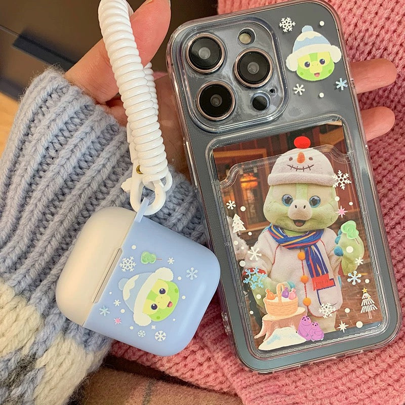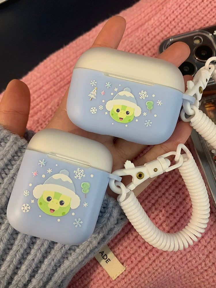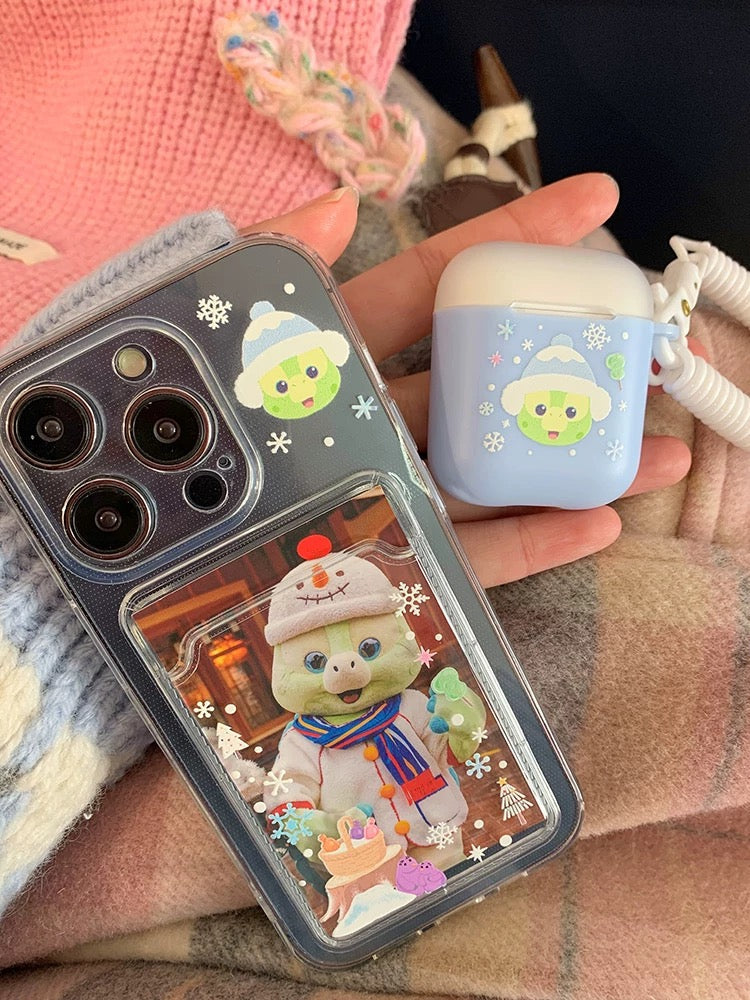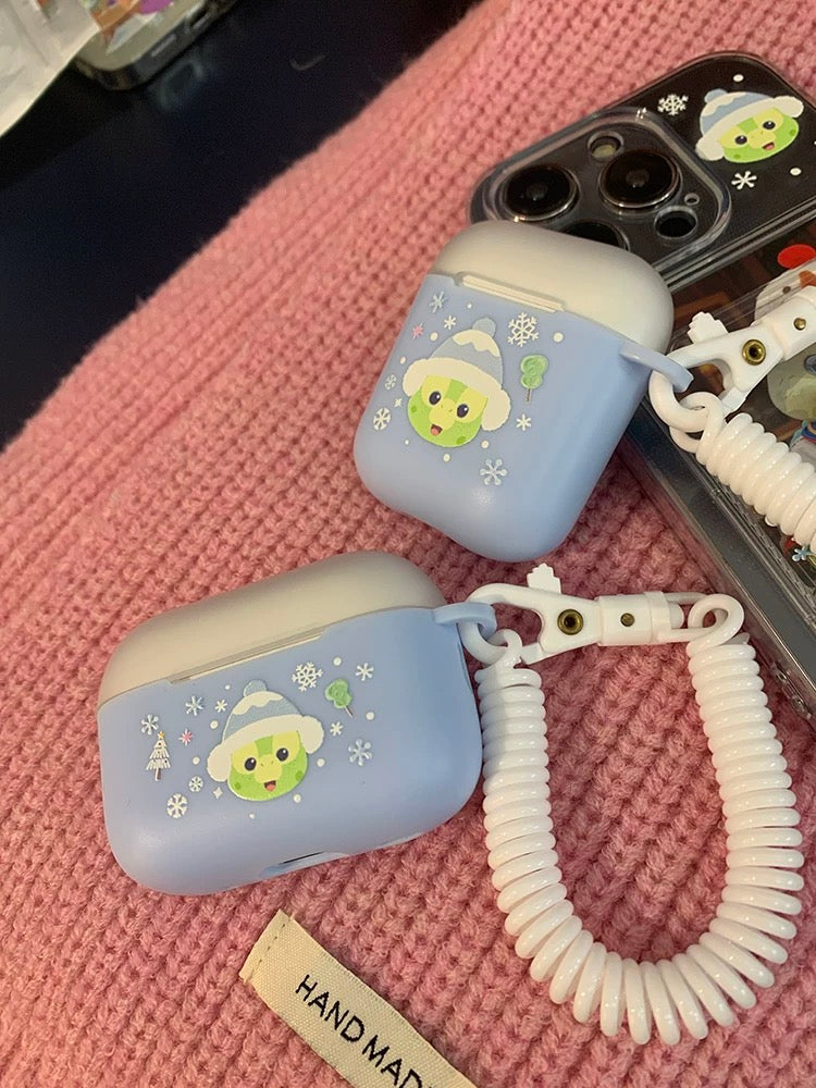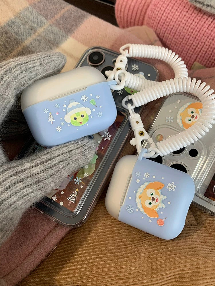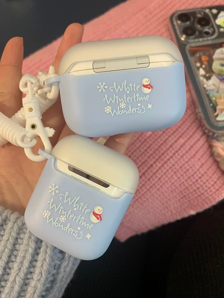 Japanese Cartoon Teddy Bear Winter White Wintertimes Wonders Snow Olu Mel & CookieAnn - AirPods AirPodsPro AirPods3 Case Blue and White