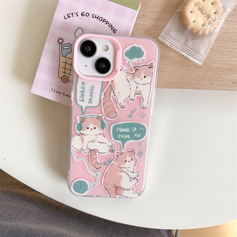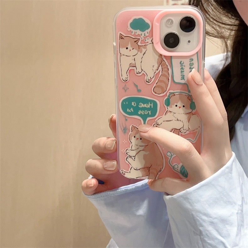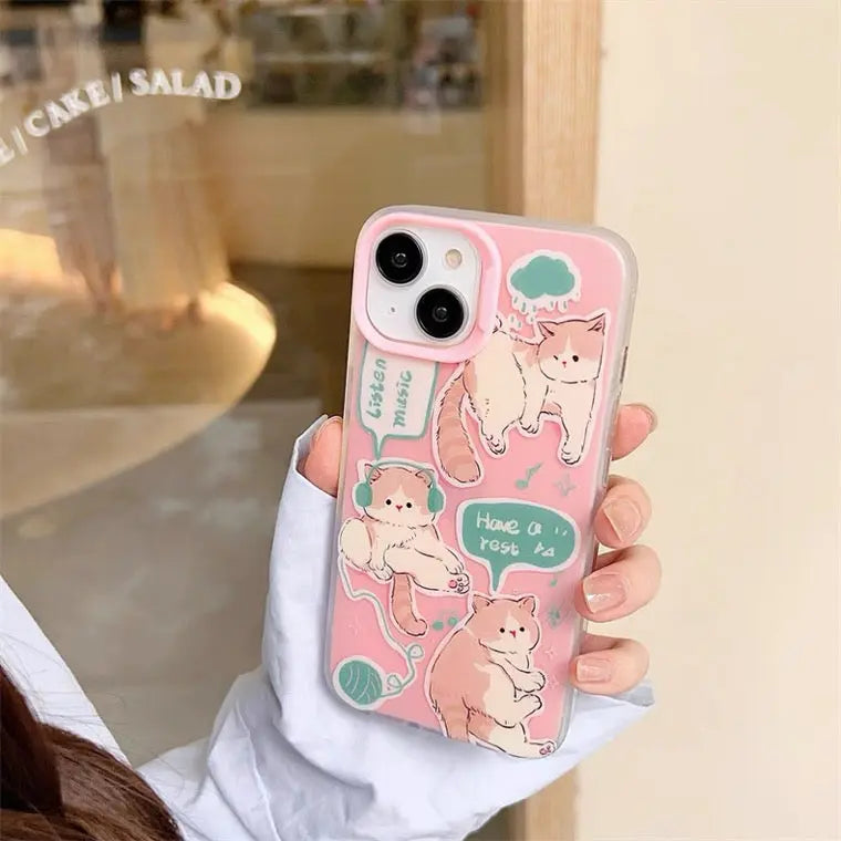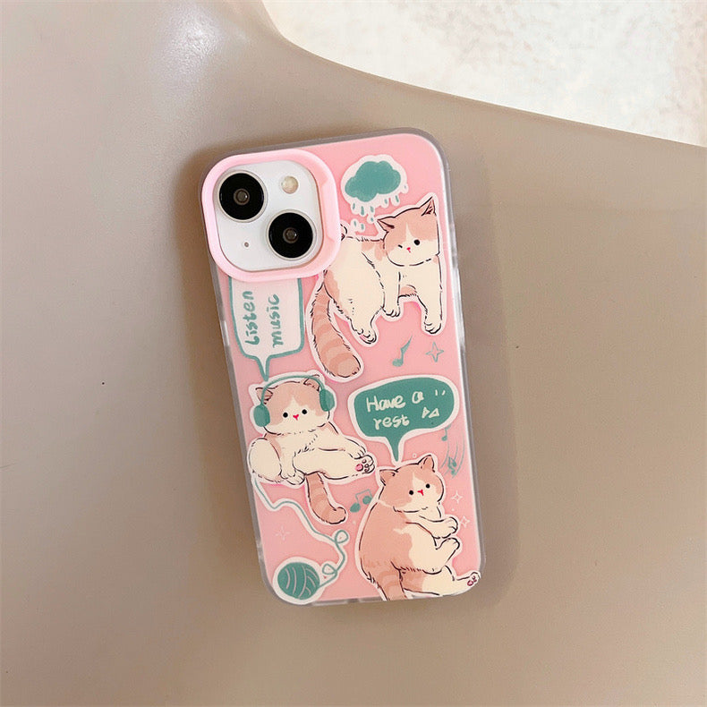 Japanese Lovely Yellow Kitten Cat Pink iPhone case Kawaii Lovely Cute Lolita iPhone 11 12 13 14 15 Pro Promax