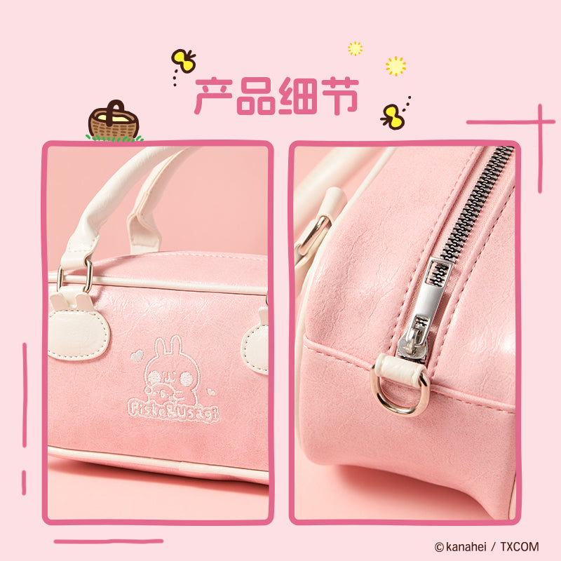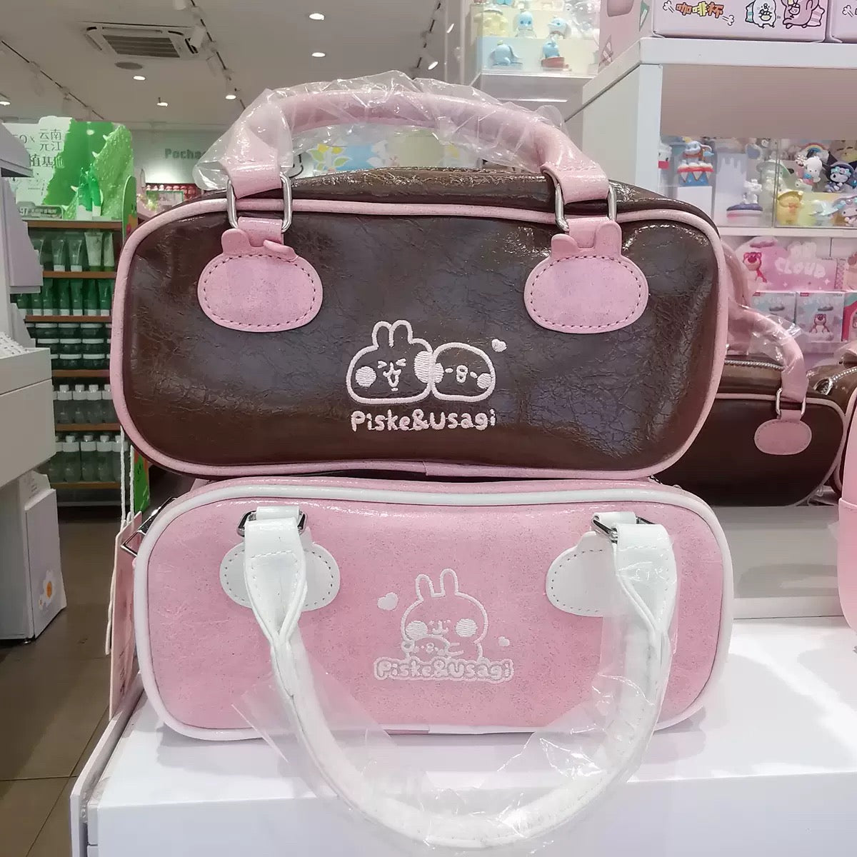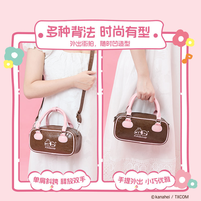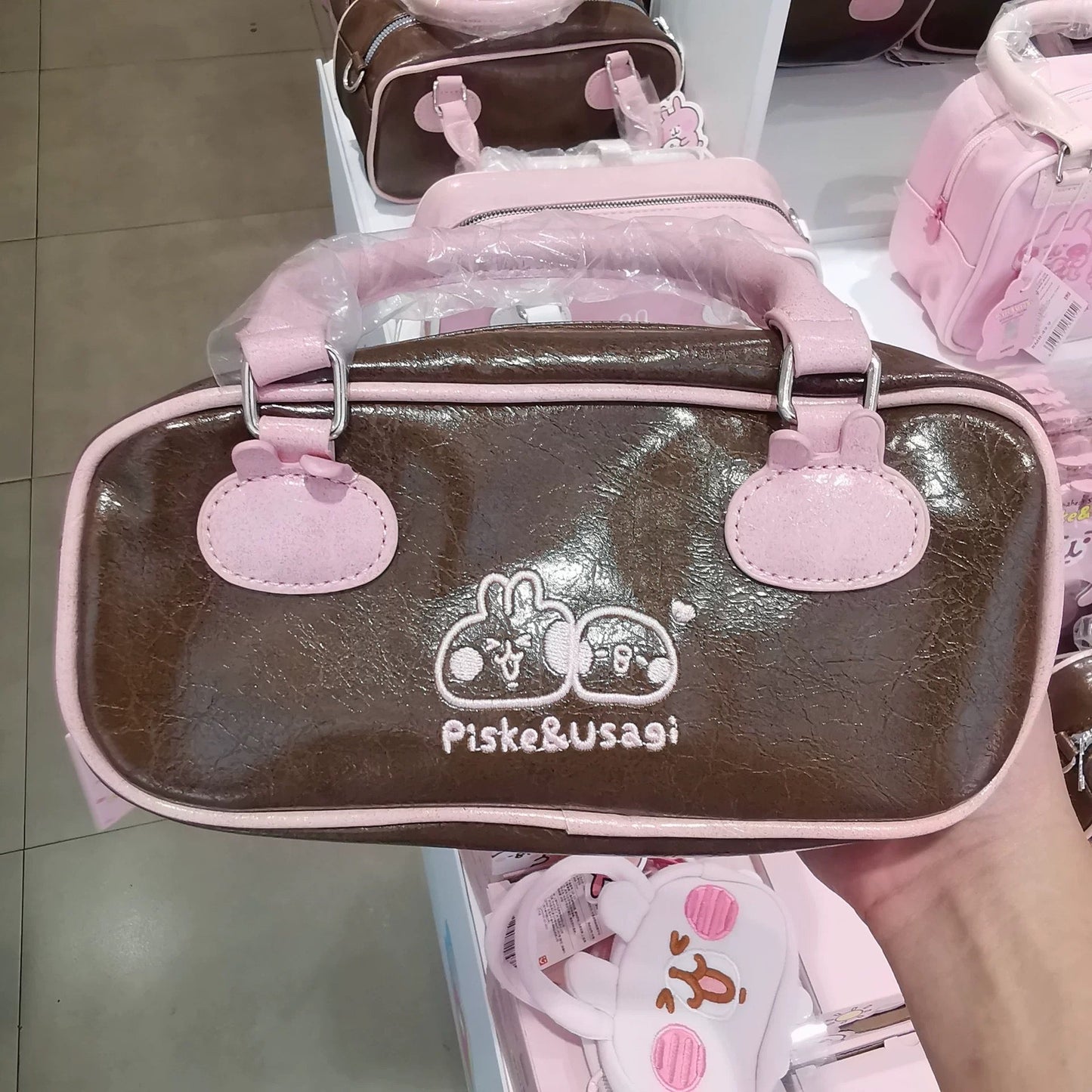 Kanahei X Miniso | Bowling Style Pink & Brown Handbag Usagi Piske Pink Rabbit White Chicken - Kawaii Make Up Bag Item Decoration